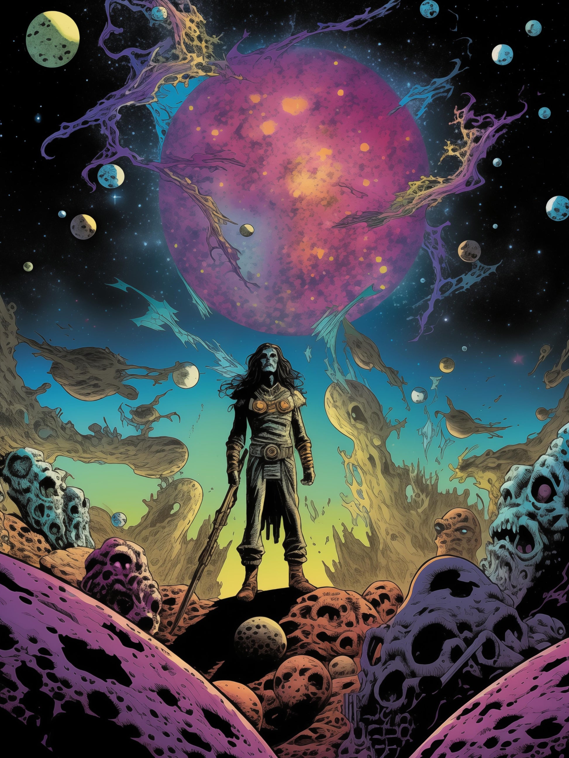 Embark on a cosmic journey with the poster “Alien Stare“, which is part of the collection Celestial Oddities, inspired by extraterrestrial wonders. Explore bizarre landscapes, encounter unique aliens, and witness futuristic scenes that blend seamlessly with the cosmos. Each poster captures the essence of cosmic exploration, portraying otherworldly scenery and the enigmatic beauty of extraterrestrial realms.