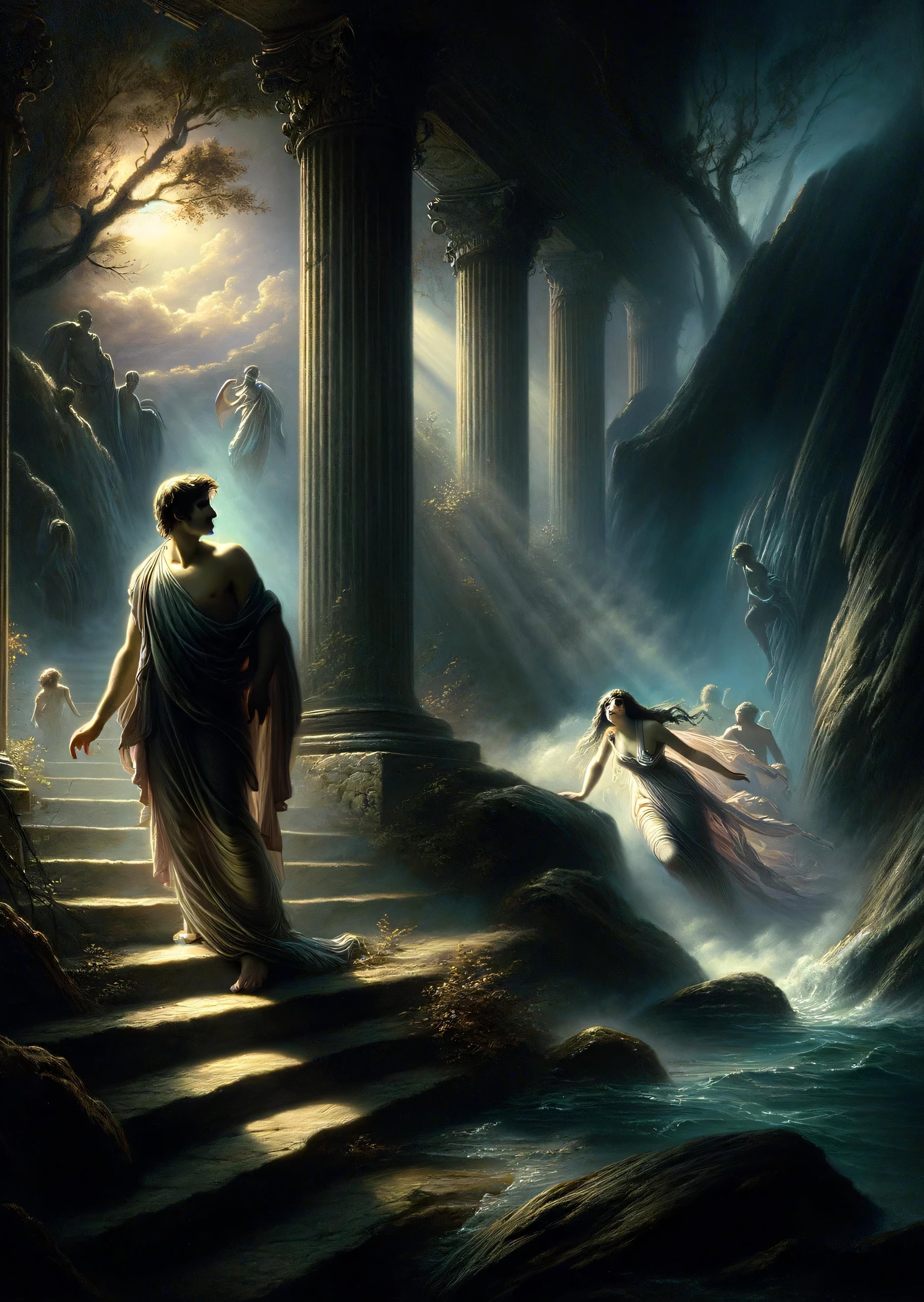 Step into a realm where the divine intersects with the earthly, and the ethereal light bathes the world in an otherworldly glow Here stands Apollo, the god of light, music, and prophecy, embodying a beacon of inspiration and artistry With a gaze that pierces the misty veil of the ancient woods, his presence commands the sacred space where muses dance to silent melodies and time surrenders to myth In this sanctuary of towering marble columns and cascading waters, the spirits of nature whisper secrets known only to the pantheon of Olympus Dive into a legend, enveloped by the mists of time, and witness the majestic beauty of forgotten eras resurrected in this mesmerizing spectacle of light and shadow