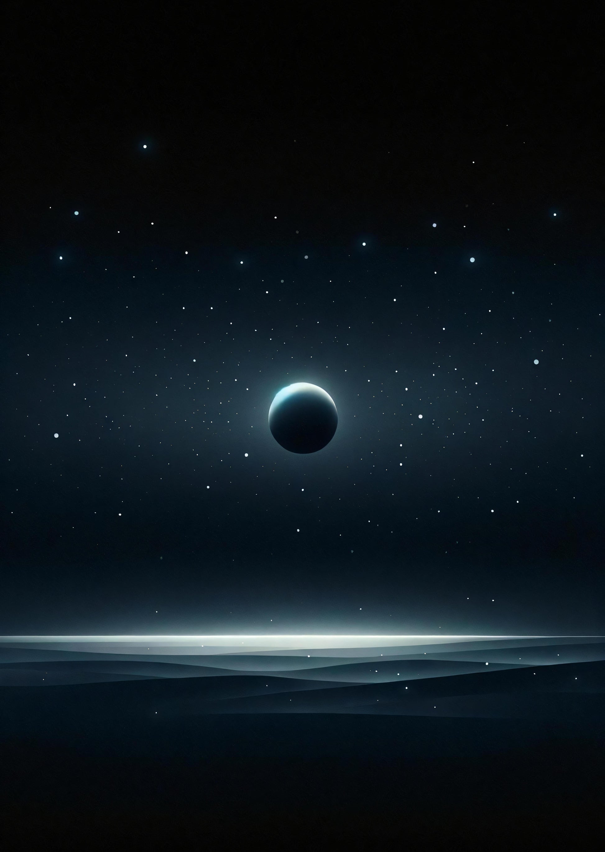 In the vast quiet of space, a lone planet hangs, a small light against the dark. This image speaks of the smallness of our world in the infinite dance of the cosmos. The stars, distant and untouchable, scatter light across the void, reminding us that each point of light might be another world, another story. Against the long night, the planet is a symbol of isolation and connection all at once: isolated in the void, yet connected by the invisible threads of gravity and light. We, gazing upon this scene, are invited to ponder our place—not just in space, but in the delicate balance of life. This picture whispers a truth that life's true importance may not be in size or position but in simply being a part of the endless vastness.