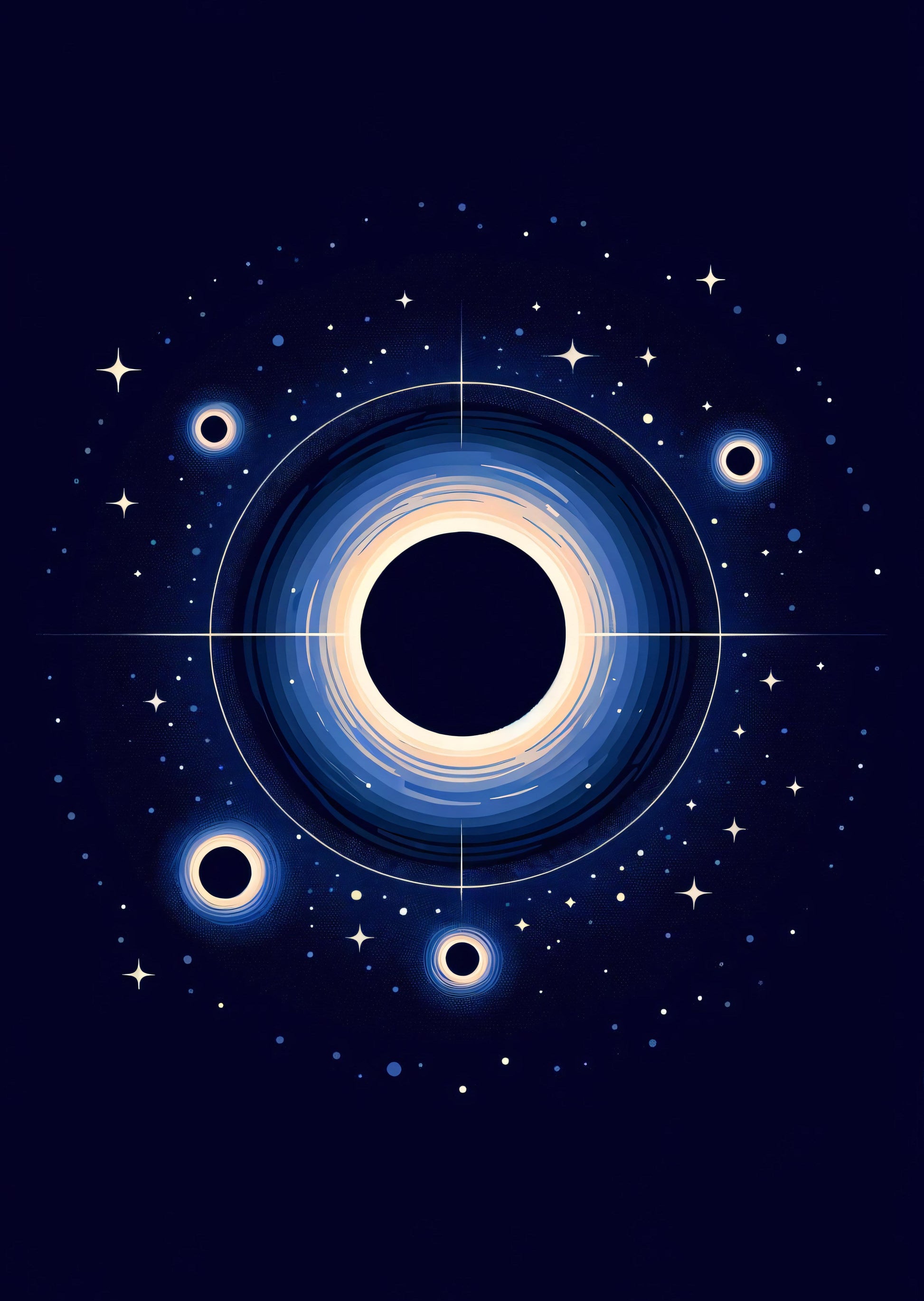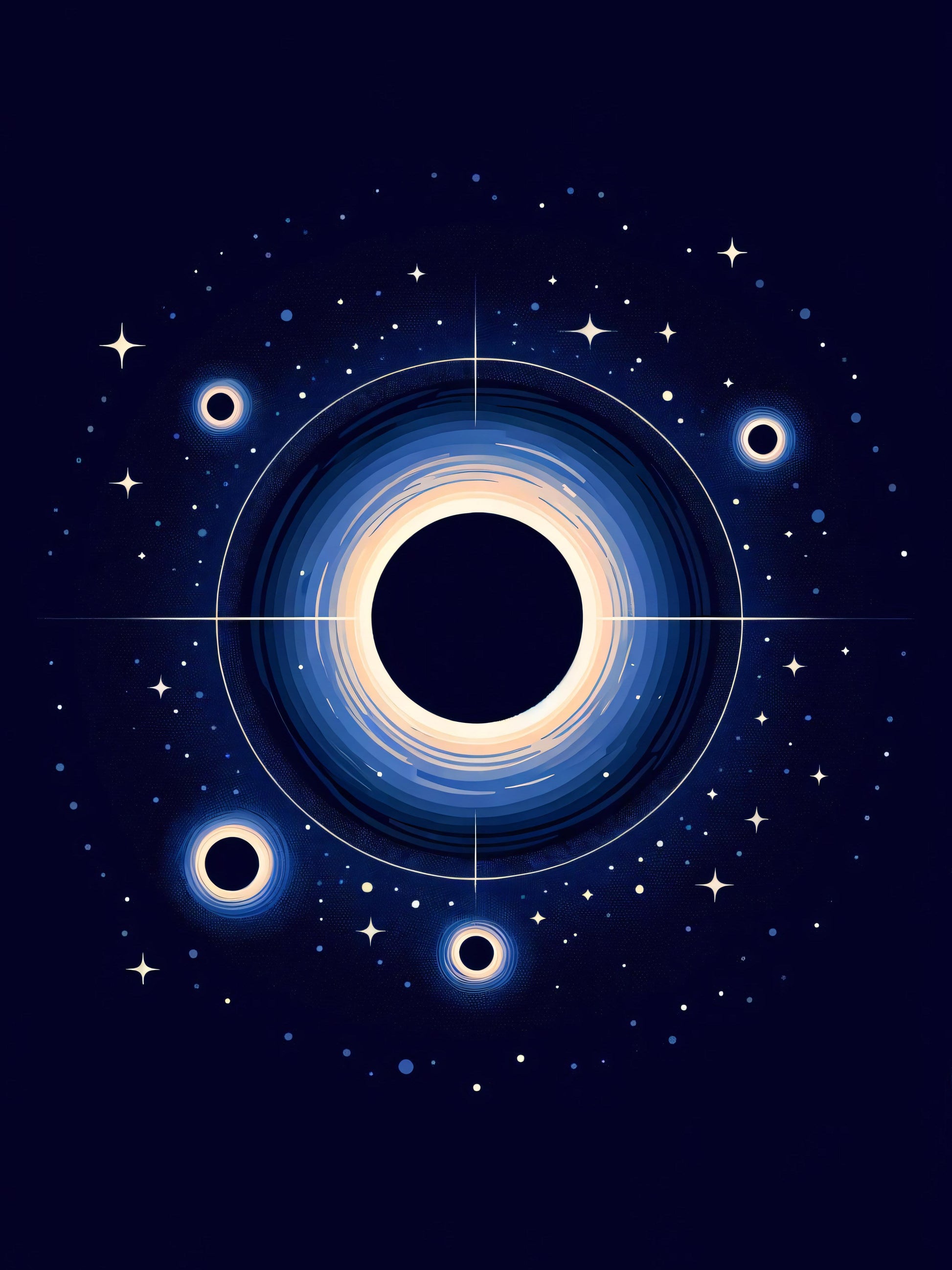 In the boundless night sky, a circle of mystery floats amidst sparkling dots. This black hole, a powerful space giant, pulls all close to its heart, where light can't escape. Like life's challenges, it reminds us that some things pull us in with invisible force. Surrounding it, rings of light dance in a cosmic rhythm, sharing a tale of beauty that thrives even near the unknown. The stars watch like wise old eyes, guiding explorers and dreamers who gaze upward, searching for their place amongst the vast canvas. It's a reminder that in the vastness of existence, every small light contributes to the grand design.