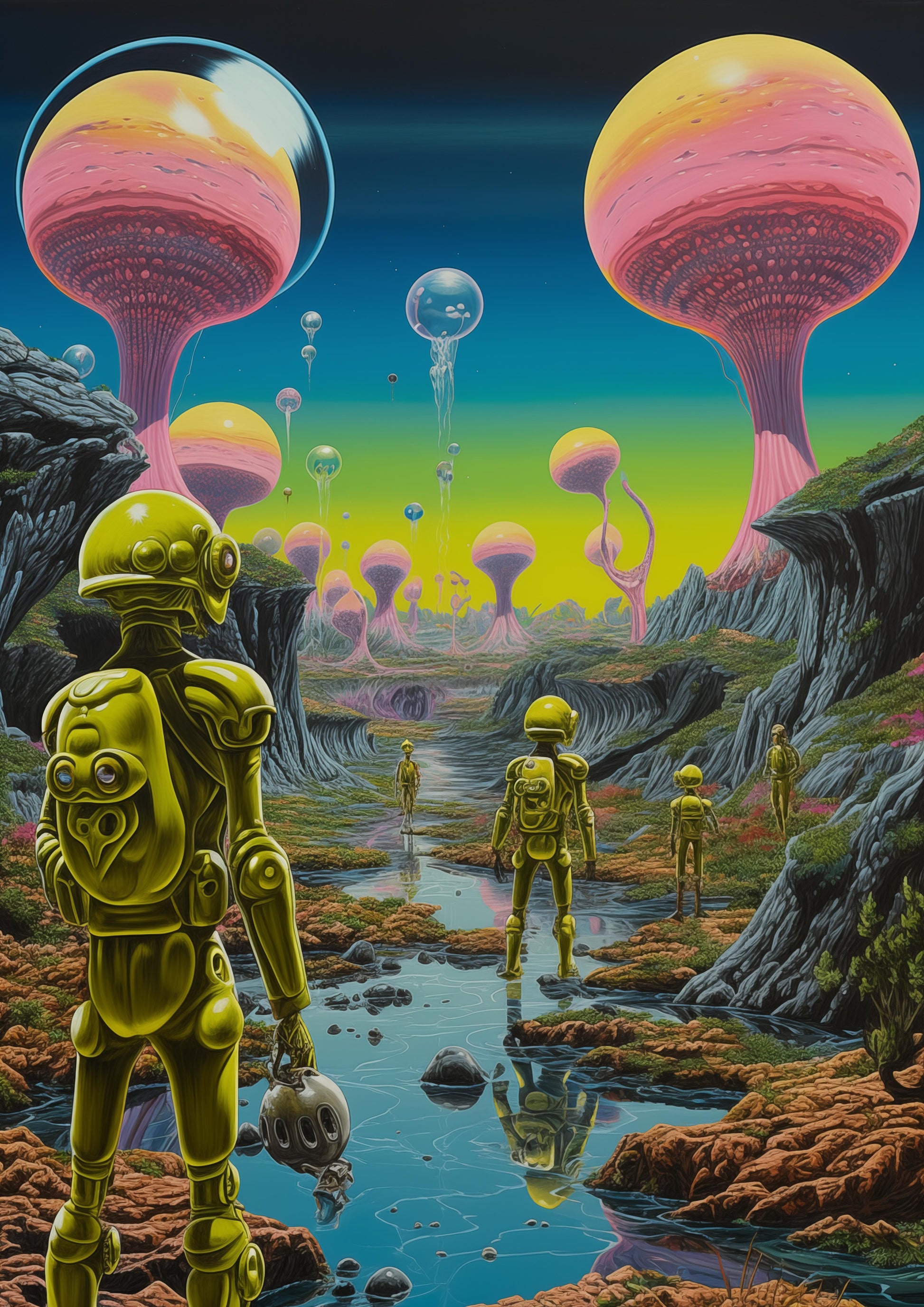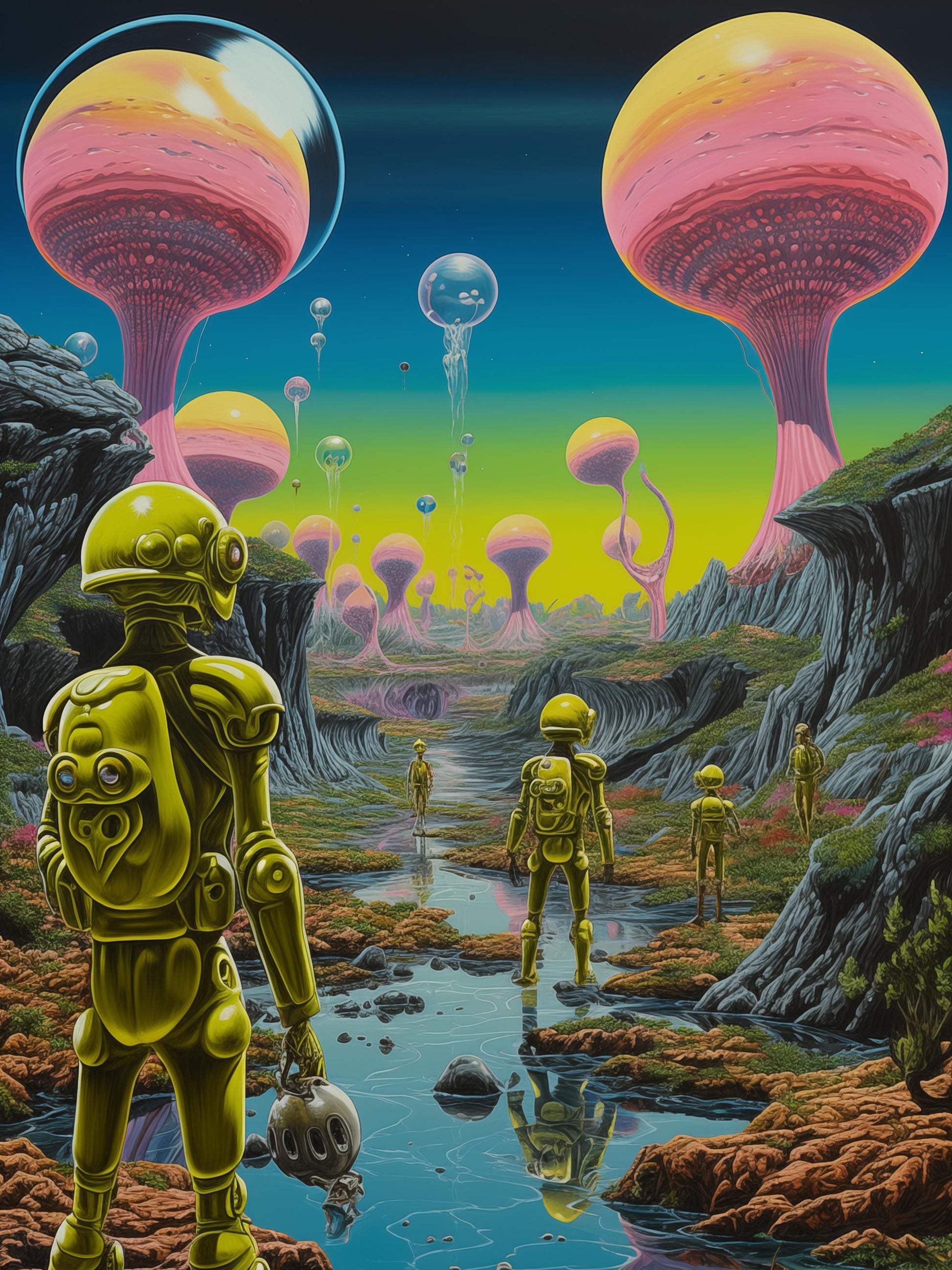 Embark on a cosmic journey with the poster “Cosmic Canyon Expedition“, which is part of the collection Celestial Oddities, inspired by extraterrestrial wonders. Explore bizarre landscapes, encounter unique aliens, and witness futuristic scenes that blend seamlessly with the cosmos. Each poster captures the essence of cosmic exploration, portraying otherworldly scenery and the enigmatic beauty of extraterrestrial realms.