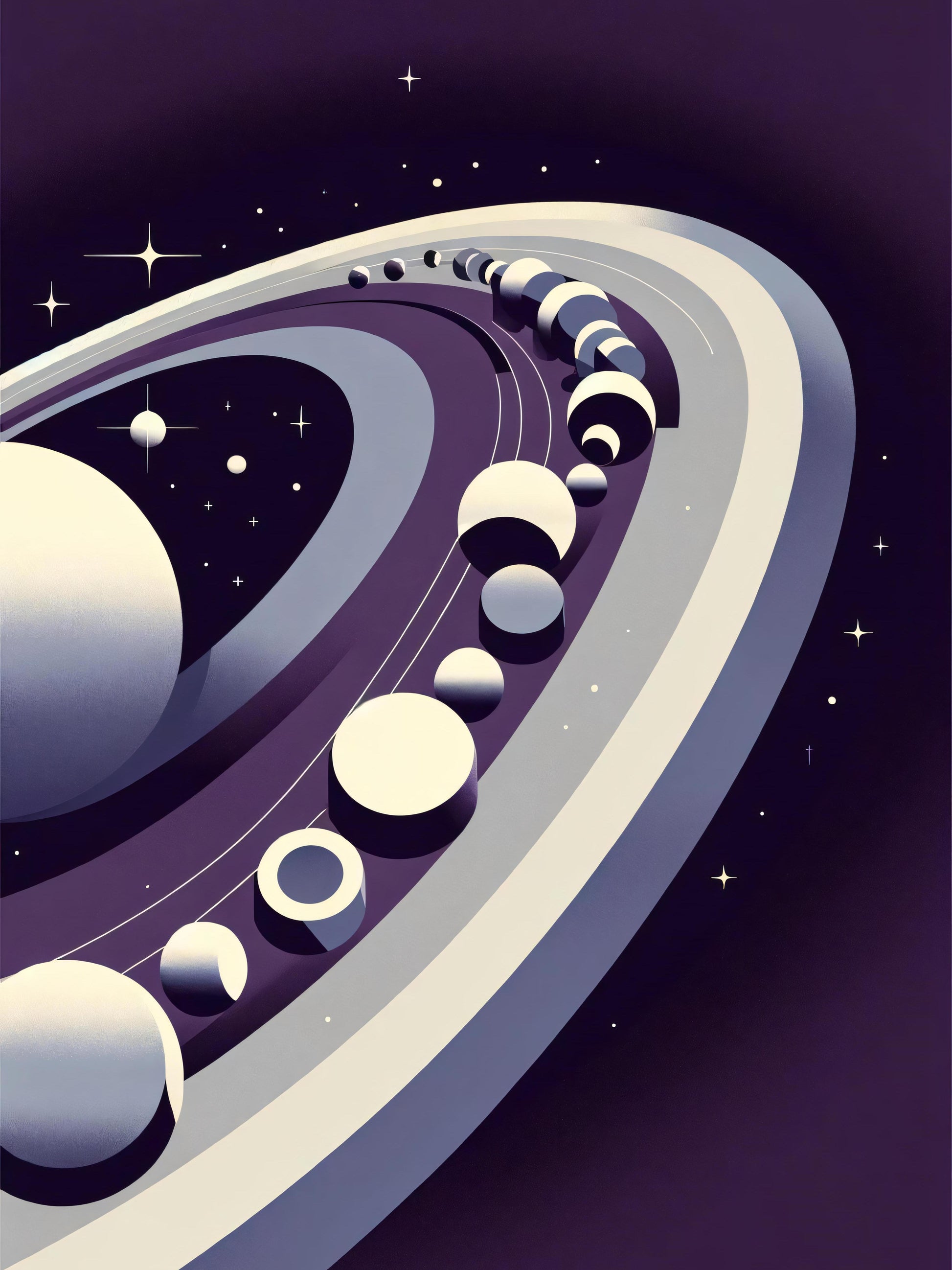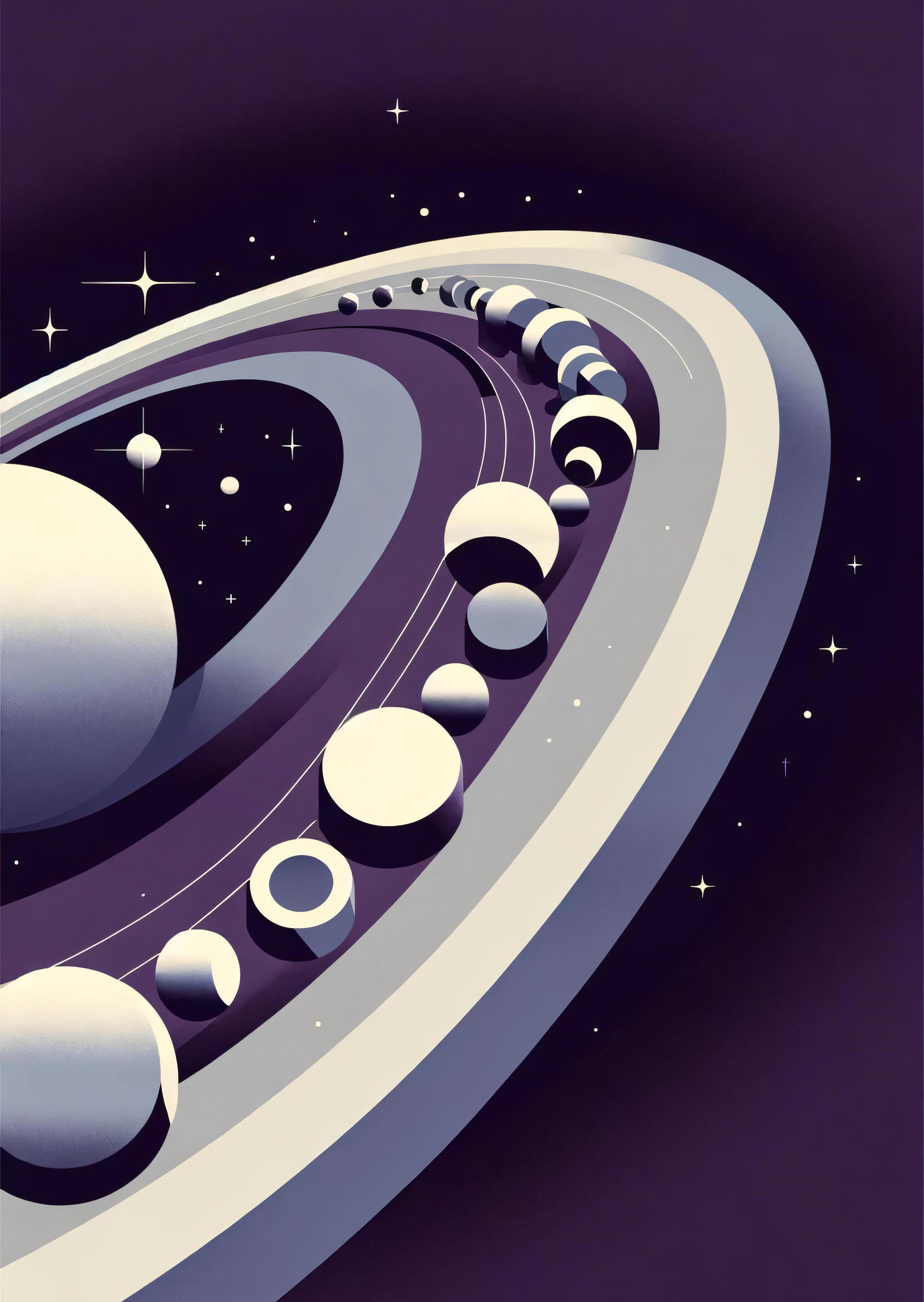 In a vast space of purple hues and twinkling lights, orbs of various sizes align in an ascending curve—each seeming to float yet also anchored to a path. This cosmic dance symbolizes life's journey, where moments and experiences, large and small, create a unique story. The path, neither straight nor predictable, bends towards the unknown, allowing for growth and change. It's a gentle reminder that in the grand vastness of existence, each step, even the smallest, is part of something bigger—a constellation of choices and chances that shape our universe and ourselves. The image whispers of potential and the unending adventure of discovery.
