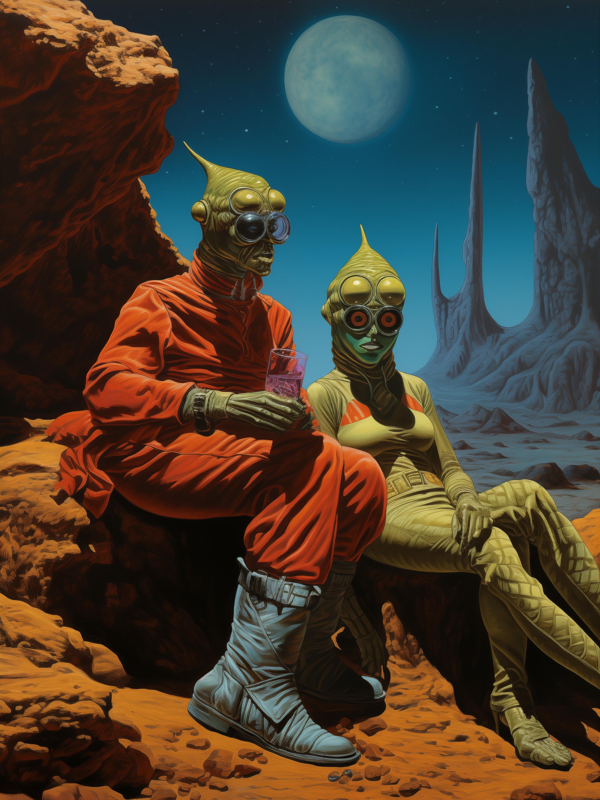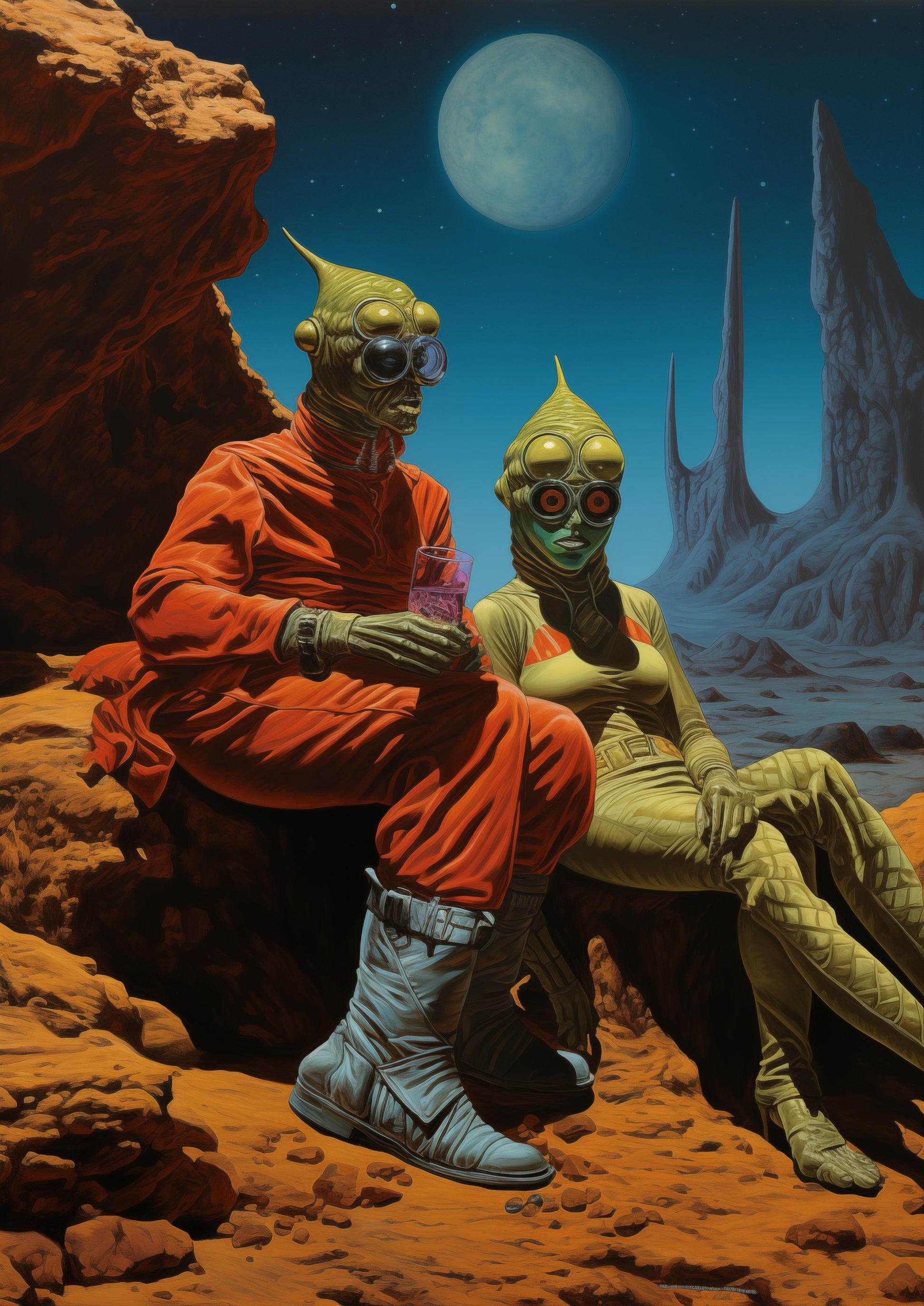 Embark on a cosmic journey with the poster “Cosmic Connection“, which is part of the collection Celestial Oddities, inspired by extraterrestrial wonders. Explore bizarre landscapes, encounter unique aliens, and witness futuristic scenes that blend seamlessly with the cosmos. Each poster captures the essence of cosmic exploration, portraying otherworldly scenery and the enigmatic beauty of extraterrestrial realms.