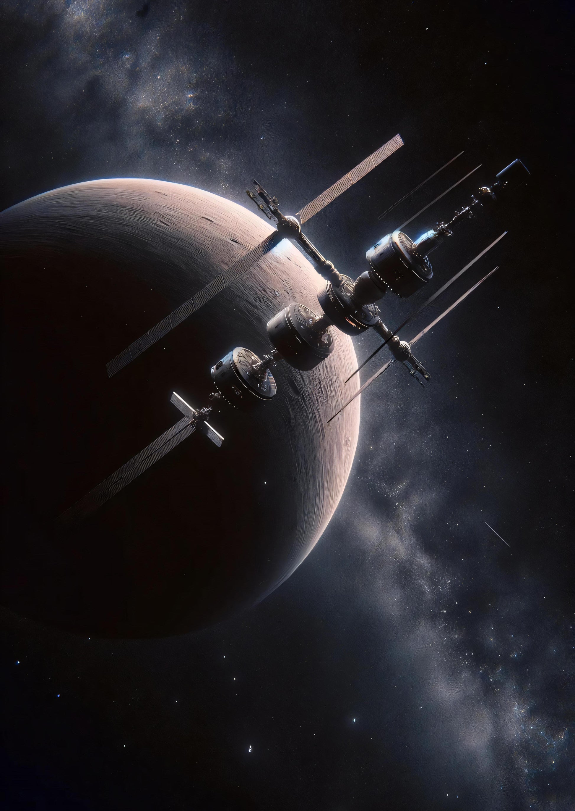 In a distant, quiet stretch of space, a collection of human-made structures orbits a planet, untethered from the familiar pull of Earth. Each module, connected by design and purpose, stands as a testament to human curiosity and the persistent drive to explore the unknown. In the vast, dark ocean of stars, this symbol of ingenuity and cooperation resembles a beacon of hope and progress, quietly witnessing the endless dance of cosmic forces. It reminds us that in the pursuit of knowledge, we are bound only by the limits of our dreams and the breadth of our determination.