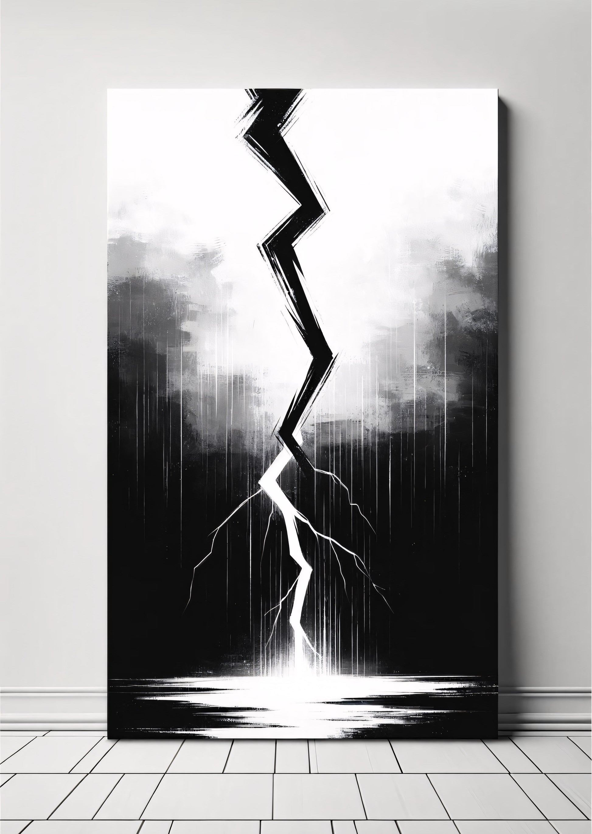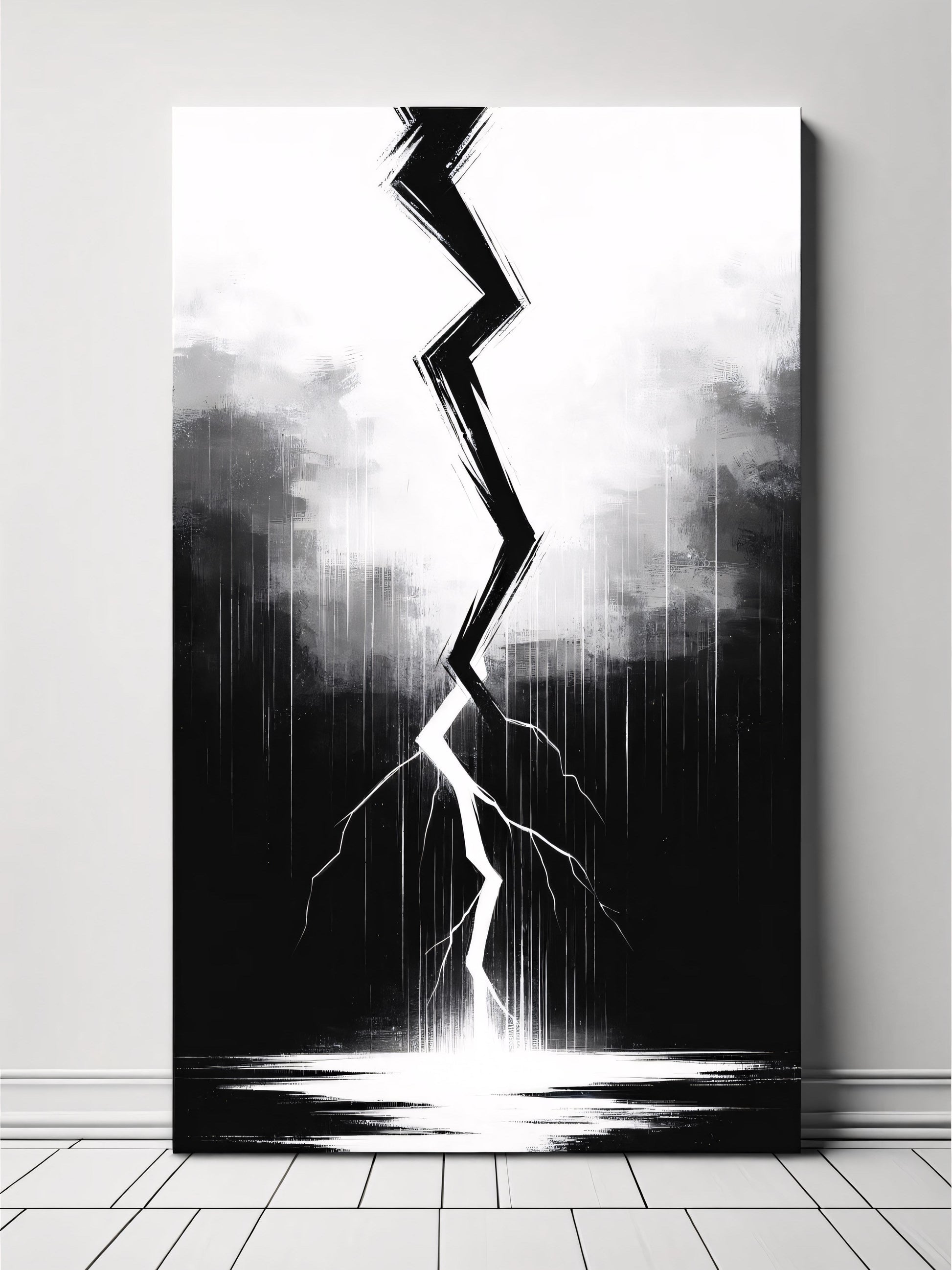 In a stark room, a painting tells a tale. It shows a jagged line, splitting the scene in two. This broken path is much like life's unexpected turns. Sometimes, calm skies turn stormy and paths that once seemed clear get blocked off. It reminds us that our plans can change in a flash. The light at the bottom hints at hope. No matter how split or rough the journey gets, there is always a point where the light seeps in. This story is about change, struggle, and the sliver of light that offers us the courage to keep going.