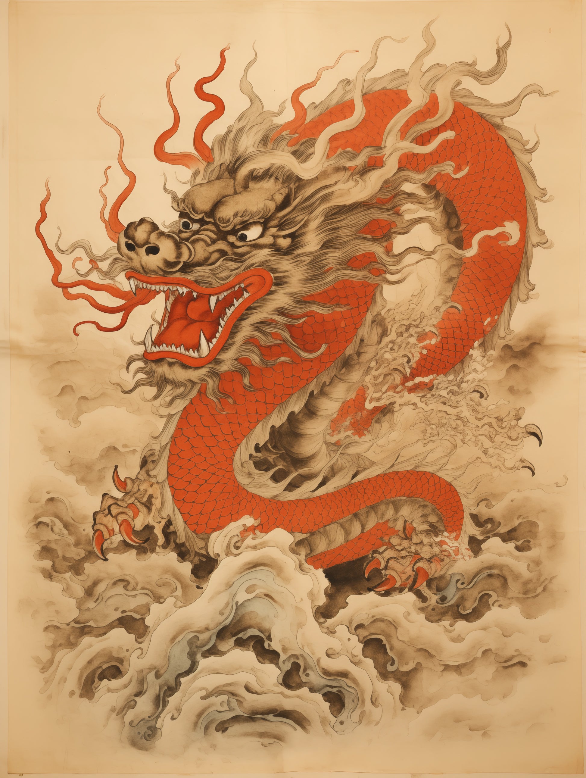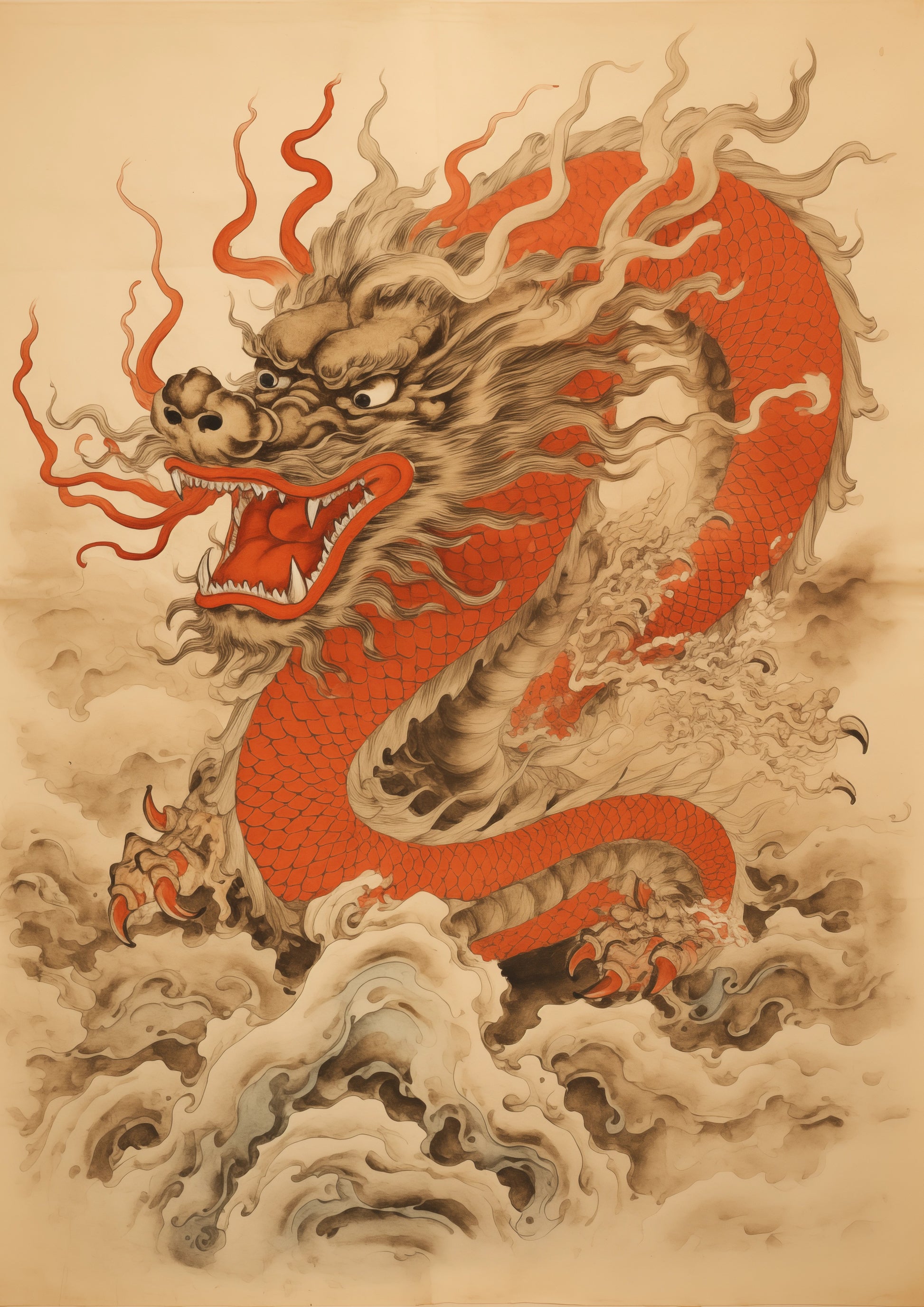 Immerse yourself in ancient Chinese mystique with 'Dragon’s Tale'. This mesmerizing poster showcases a weathered manuscript adorned with intricate depictions of a majestic red dragon, a symbol of power, strength, and prosperity in Chinese culture. The dragon's sinuous form dances across the parchment, evoking an aura of ancient wisdom and boundless potential. Display this poster to honor the rich heritage of Chinese mythology and invite the potent energy of the dragon into your space.