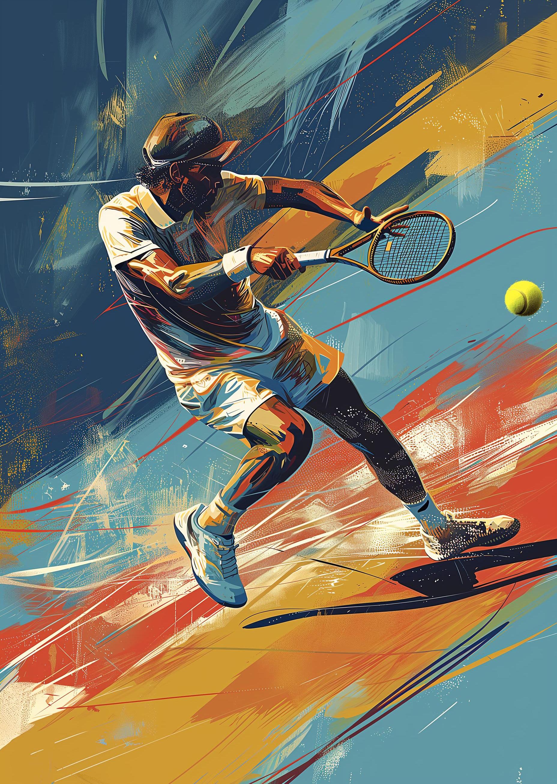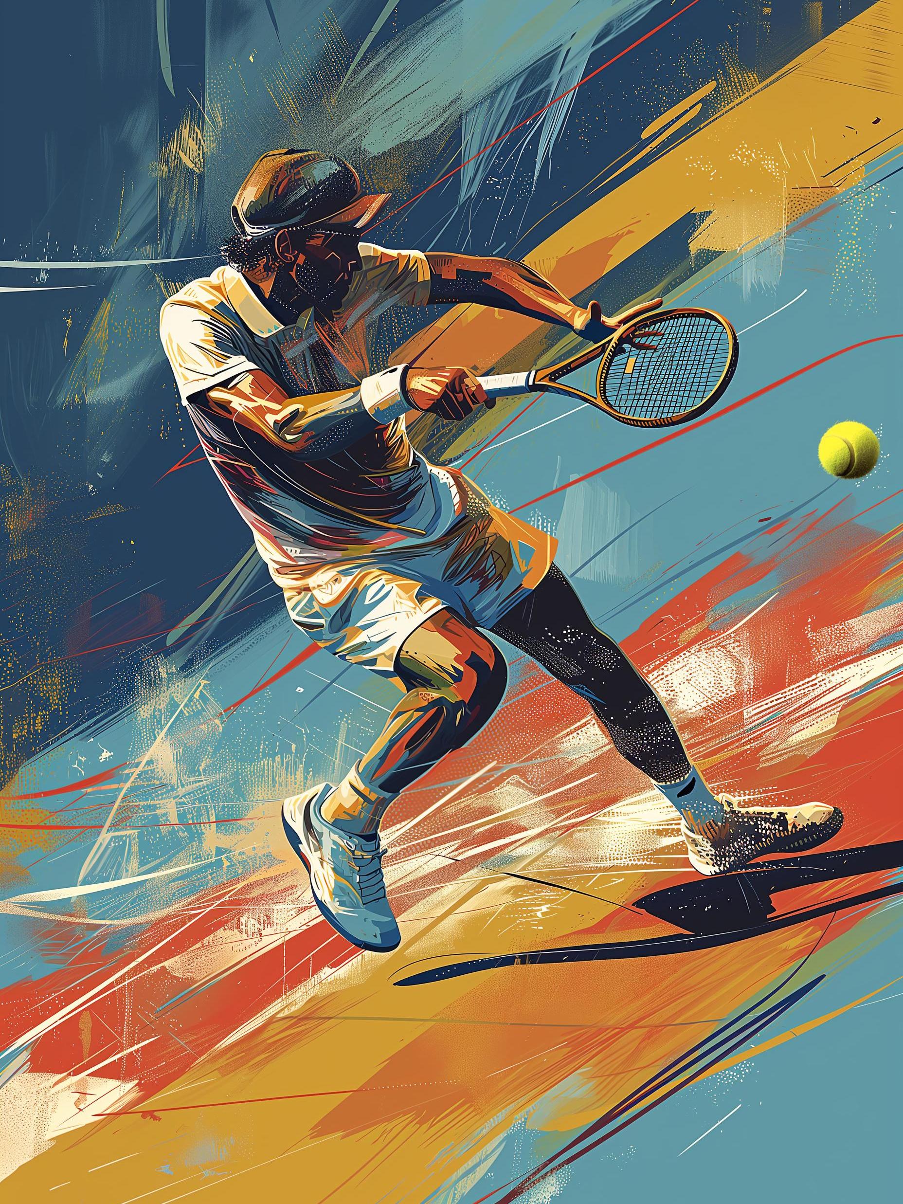 In a colorful blur, a tennis player leaps into action. As his racket swings to meet the approaching ball, the crowd holds its breath. The game is close; every point matters. He aims carefully, muscle and mind in sync. The ball rockets over the net, a yellow flash against the sky. His opponent races, but the shot is swift, a curve of pure skill. Fans cheer, feeling the rush. This is more than a game; it's a battle of wits and agility. With every stroke, the tension builds. Who will claim victory on the vibrant court today? Only time and talent will tell.