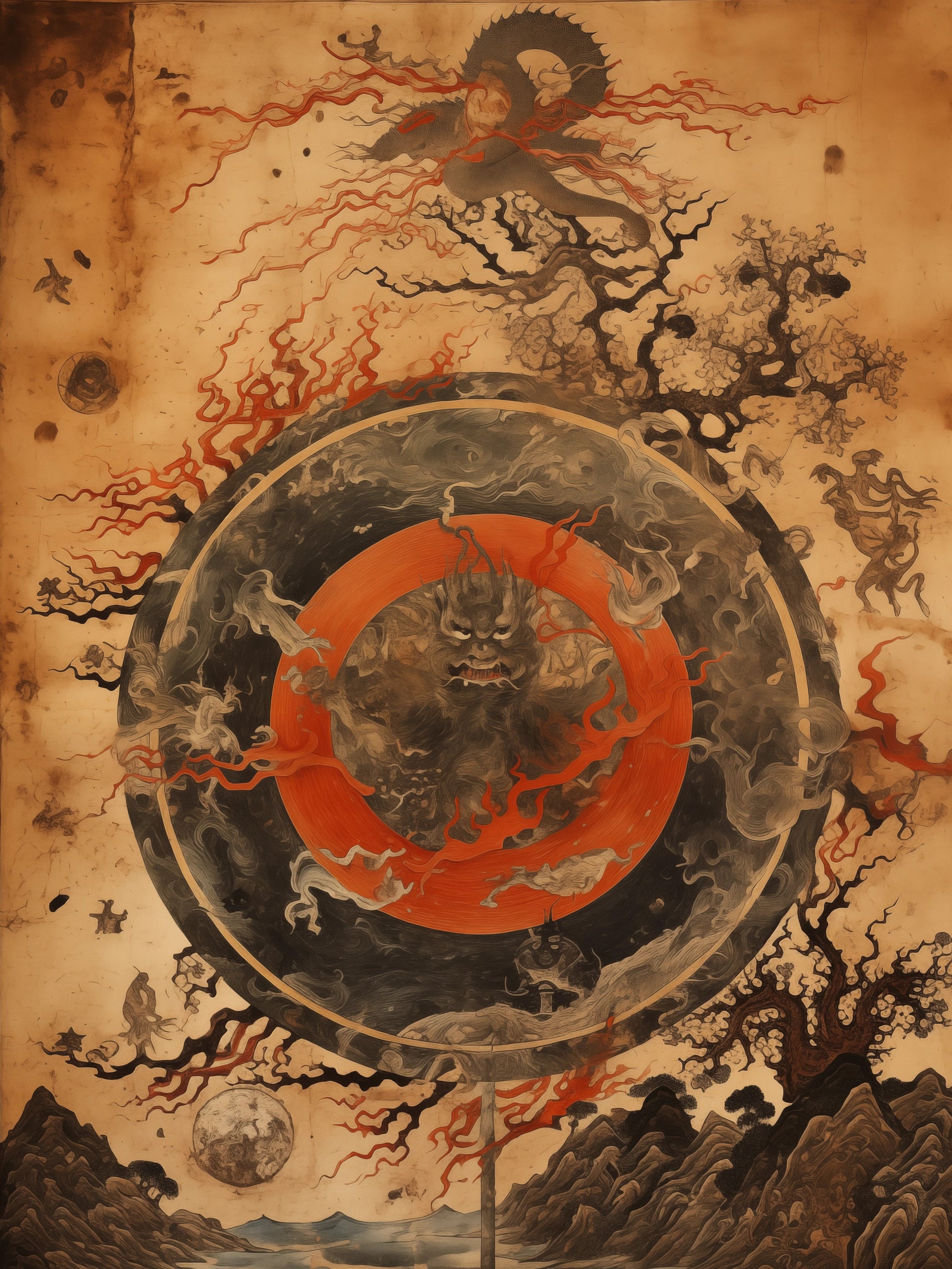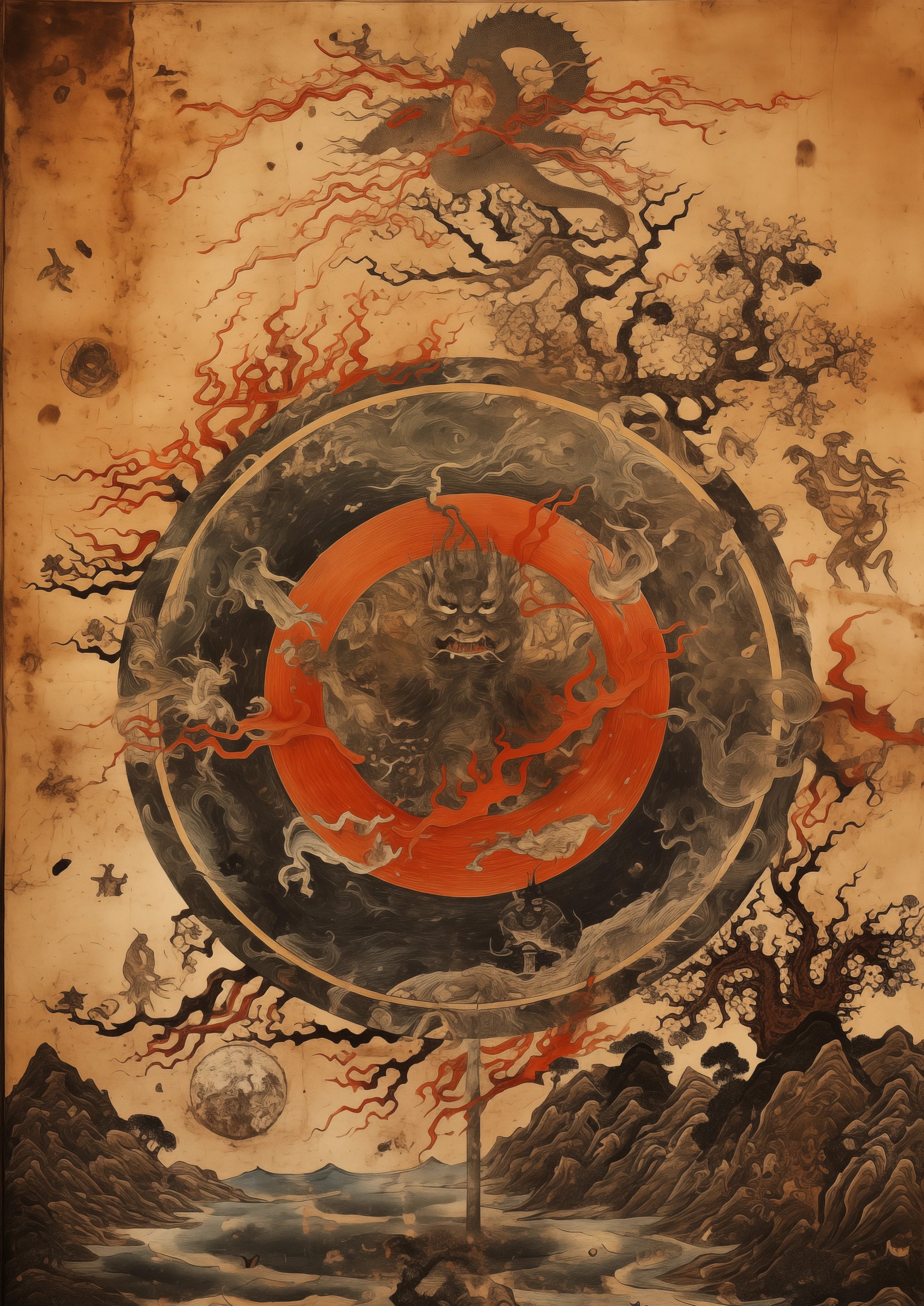 “Eternal Duality” presents a captivating circle in red and black, evoking the ancient concept of Yin and Yang. This mesmerizing poster showcases the interplay of opposing forces, symbolizing balance and unity in the cosmos. The vivid hues and swirling patterns draw the viewer into a meditative state, inviting contemplation on the cyclical nature of existence. Display it as a visual reminder of the eternal dance between light and dark, and the profound interconnectedness of all things.