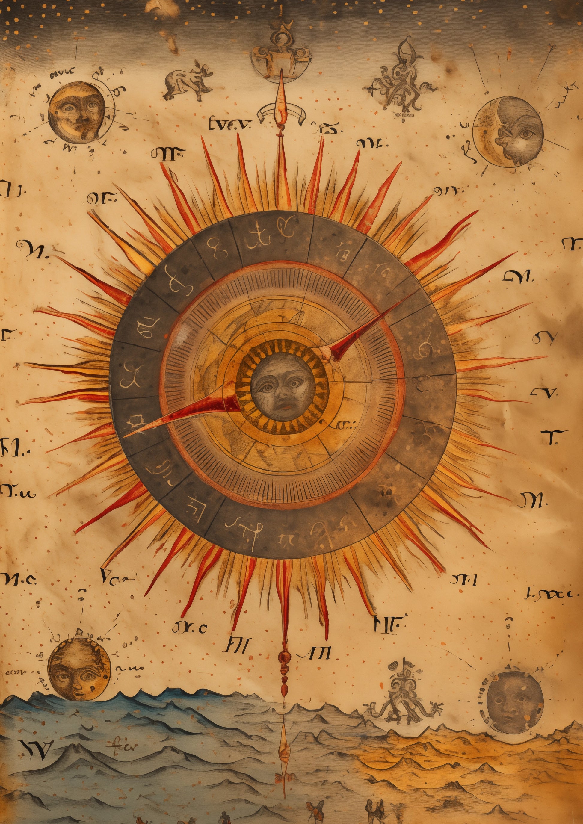Behold the “Eternal Motion” poster, a captivating portrayal of the sun as an ancient seasonal clock. This evocative artwork captures the celestial dance of the sun, marking the passage of time through the seasons in a time-honored depiction. The sun's journey across the heavens is rendered with timeless elegance, inviting contemplation on the cyclical nature of nature itself.