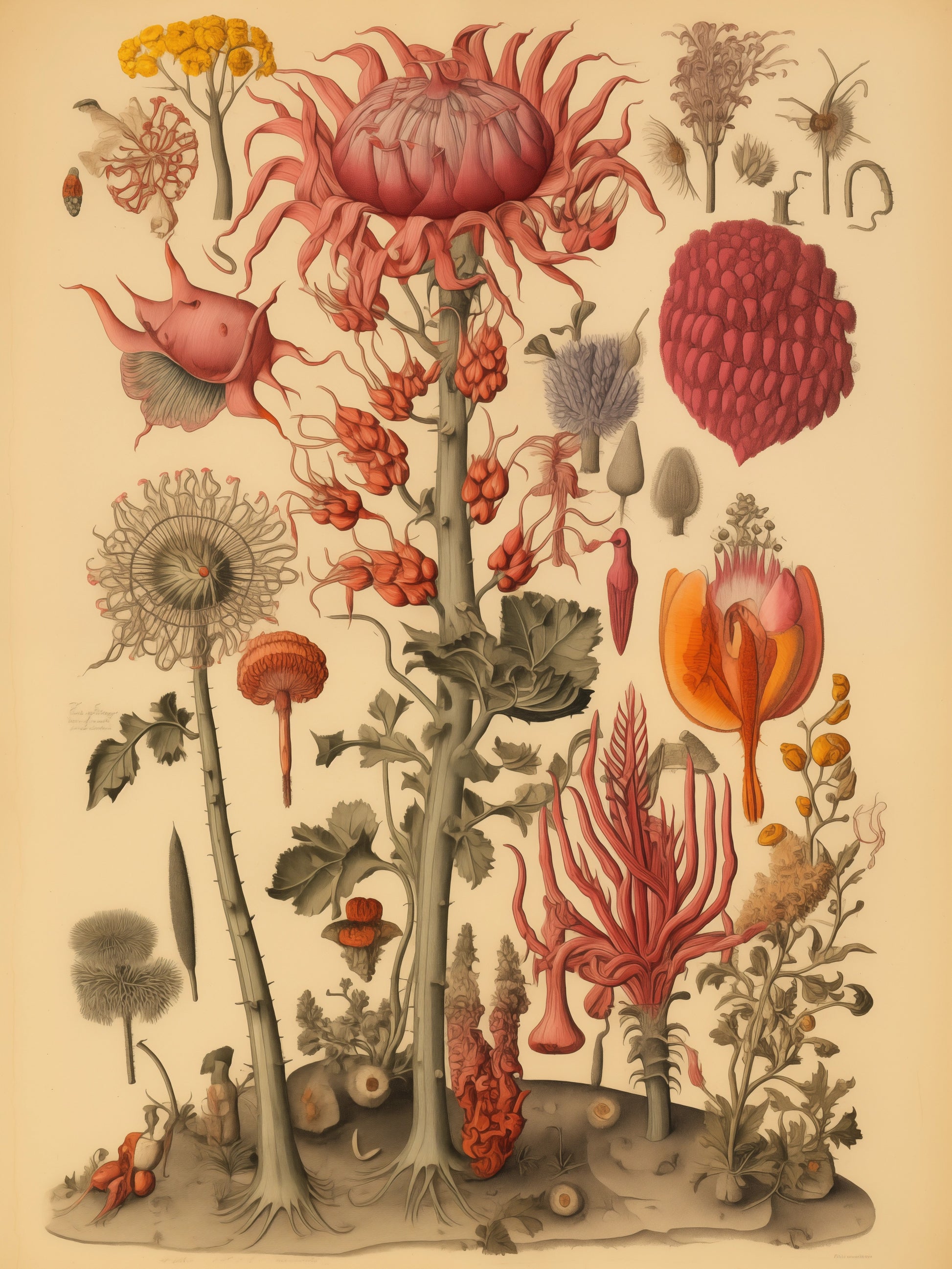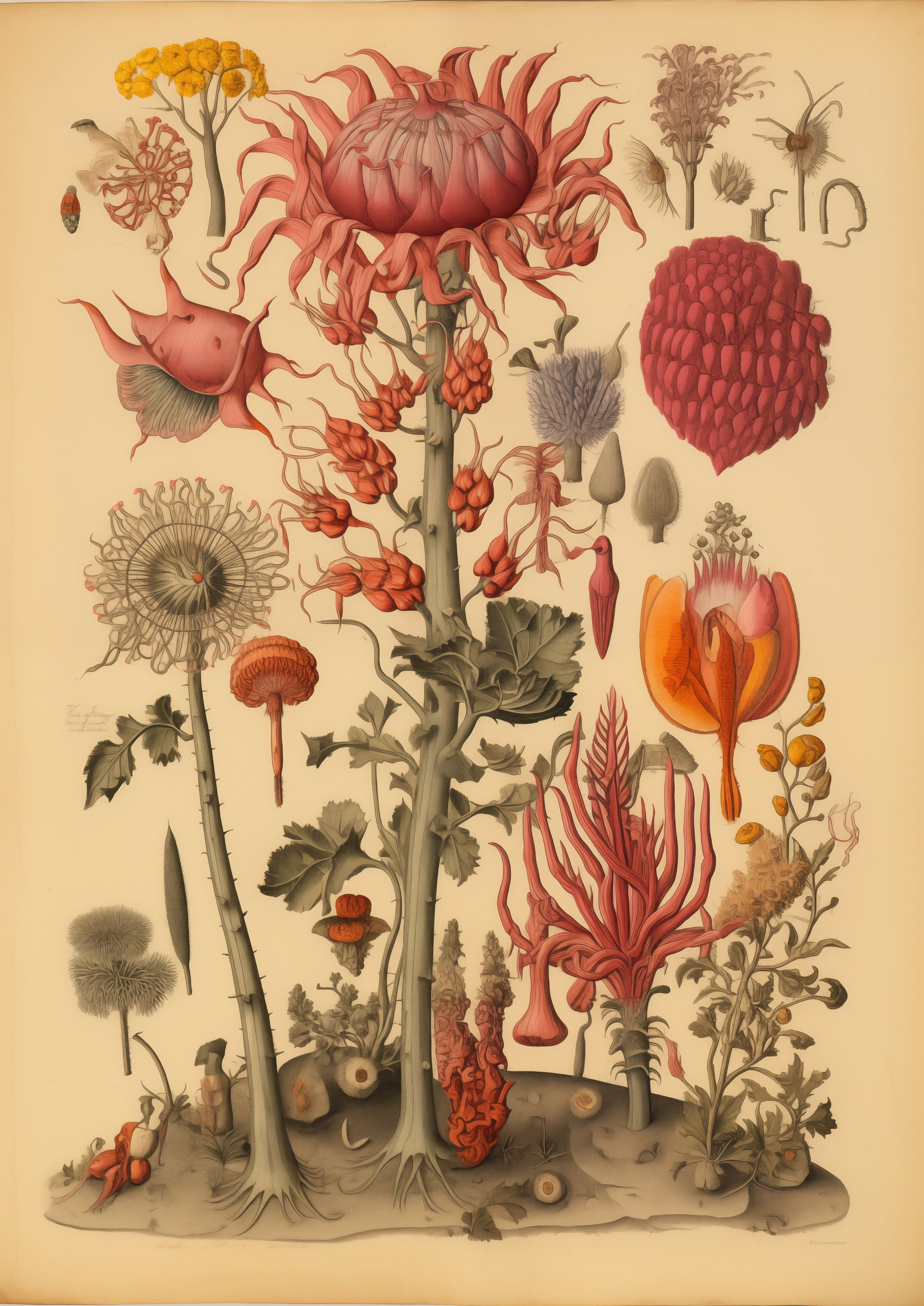 Immerse yourself in the vibrant allure of Exotic Elegance,' a captivating botanical poster showcasing a collection of exotic red flowers. Each bloom bursts forth with vibrant intensity, their petals unfurling in a breathtaking display of nature's artistry. This poster celebrates the rich diversity and beauty of the botanical world, inviting you to revel in the splendor of these striking, crimson-hued blossoms.