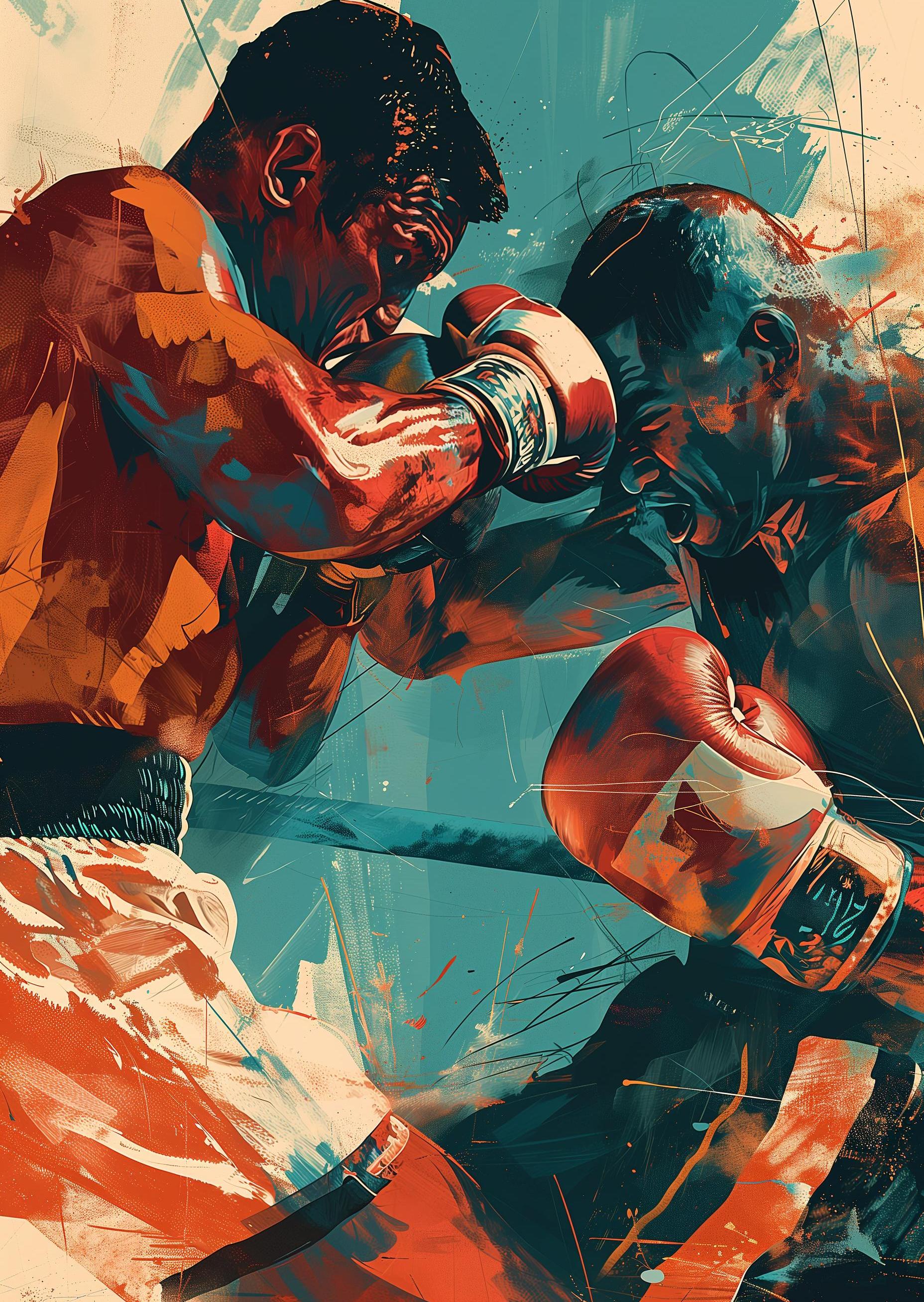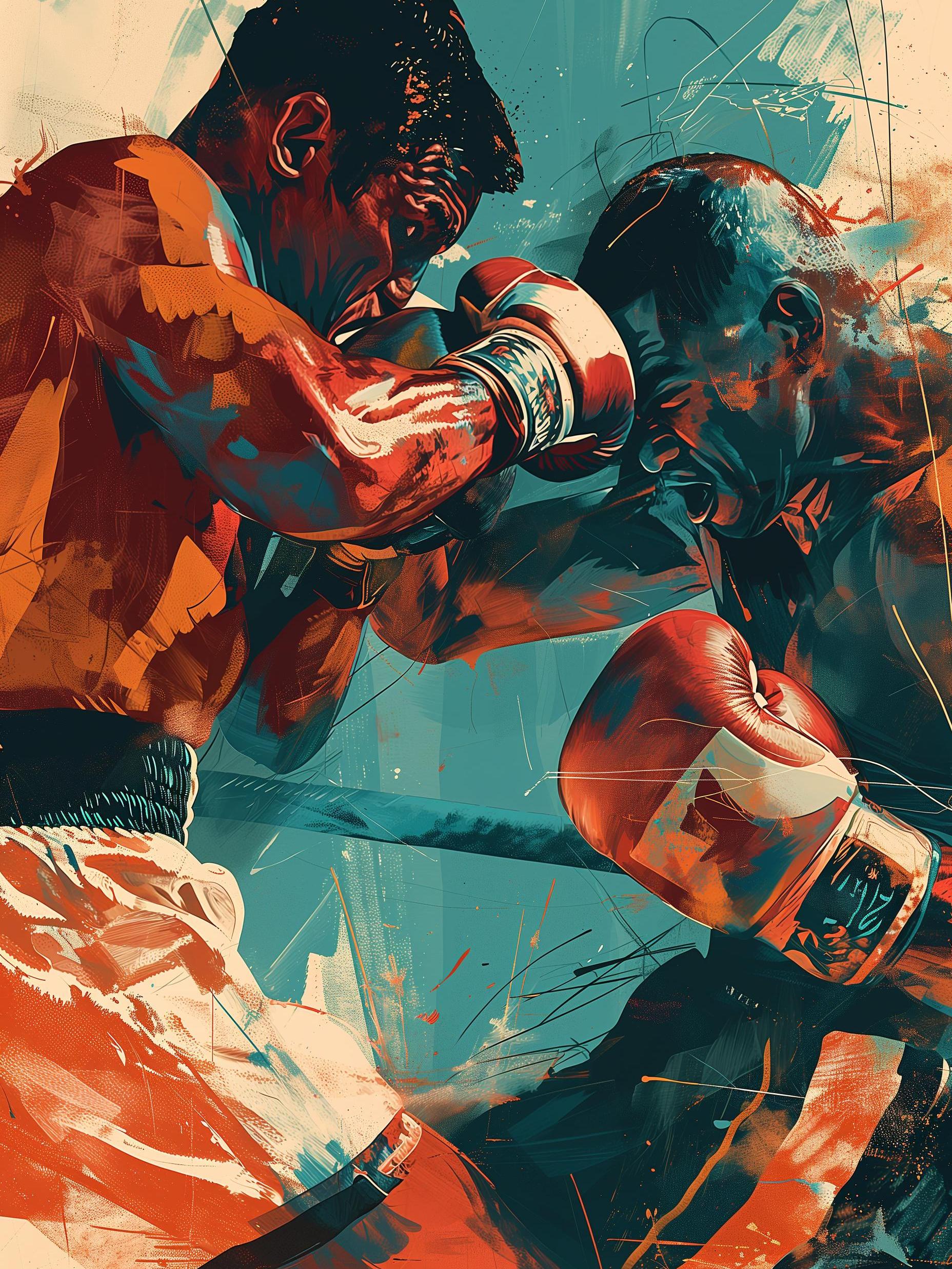 In a square ring, two boxers face off, muscles tense and eyes locked. The crowd roars as gloves clash, each punch a story of struggle and grit. Sweat and focus mix in the air, the fight a dance of power and will. With every swift move and sharp jab, they push the limits of human strength. The bell rings, hearts pound, and only one will claim victory in this fierce battle of titans. The sport is raw and real, echoing with the sound of courage and fierce determination.