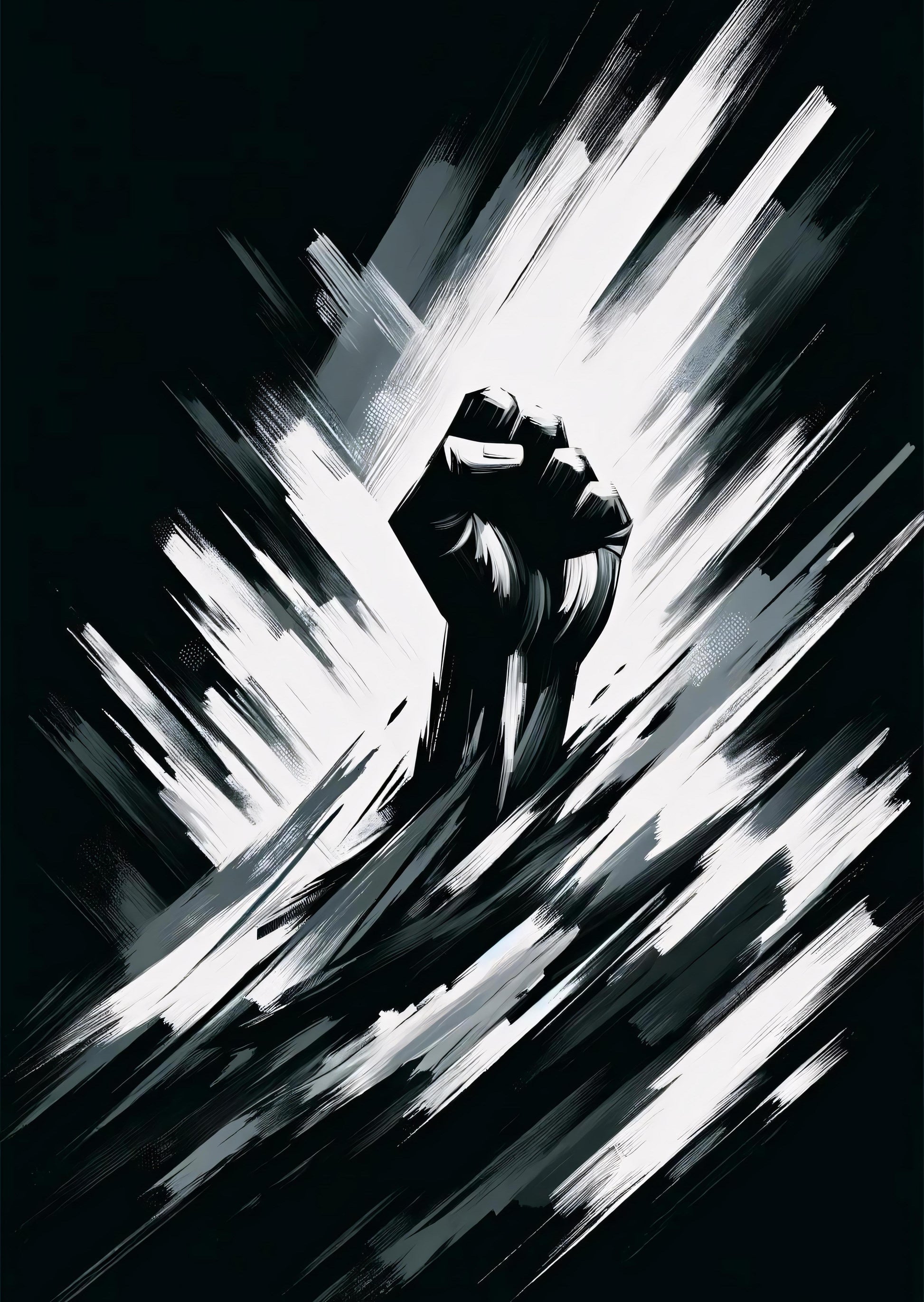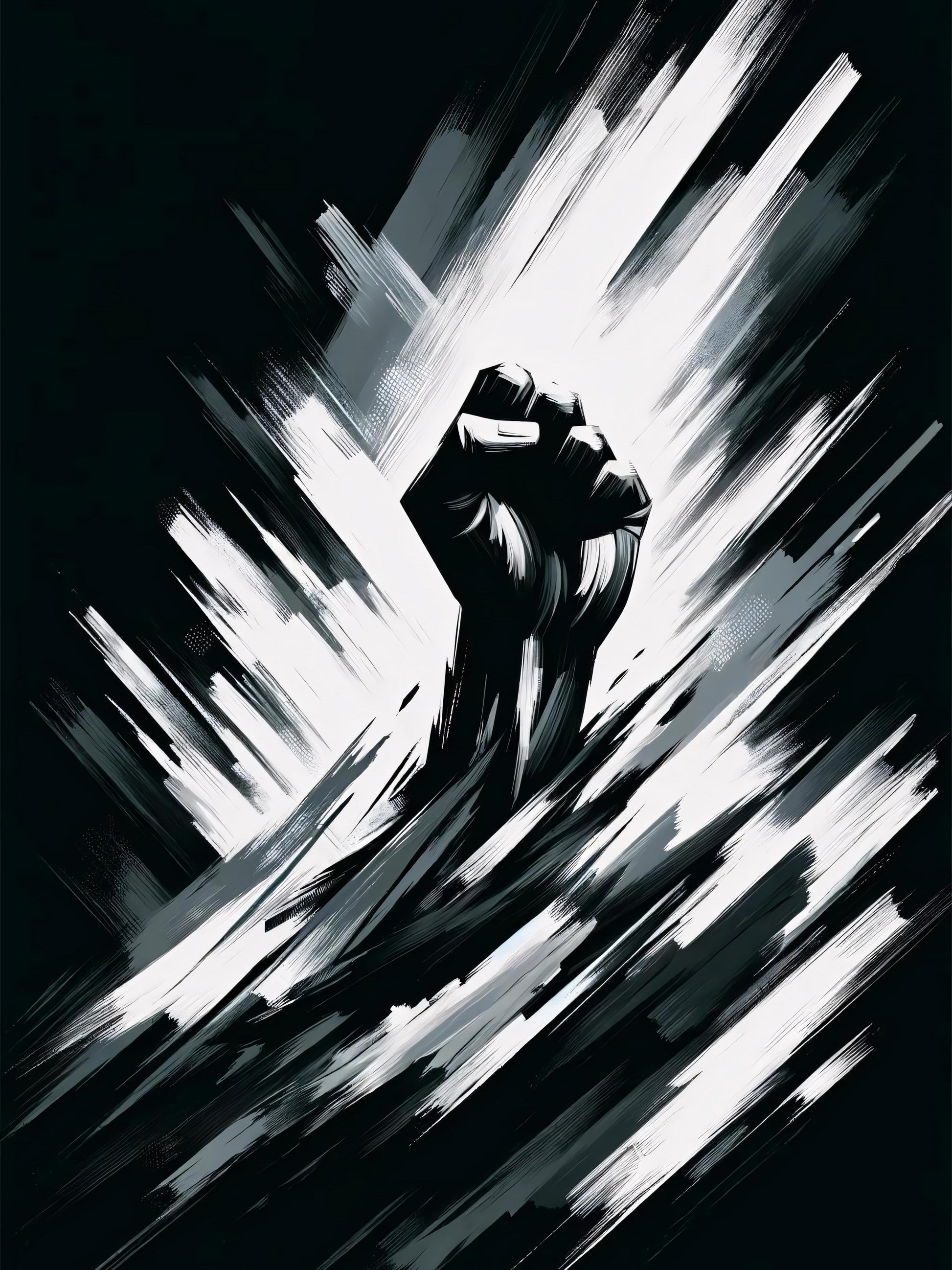 In a world painted with broad strokes of black and white, a lion stands bold and resolute. Its gaze, fixed upward, speaks of courage undeterred by the chaos that swirls aroud it. The lion, a symbol of strength, is unmoved by the streaks of challenge that fly past. This image reminds us that in the tumult of life's contrasts and struggles, there is power in focus and steadfastness. A quiet roar that lies within, ready to face the ever-moving world with an unshakable spirit.