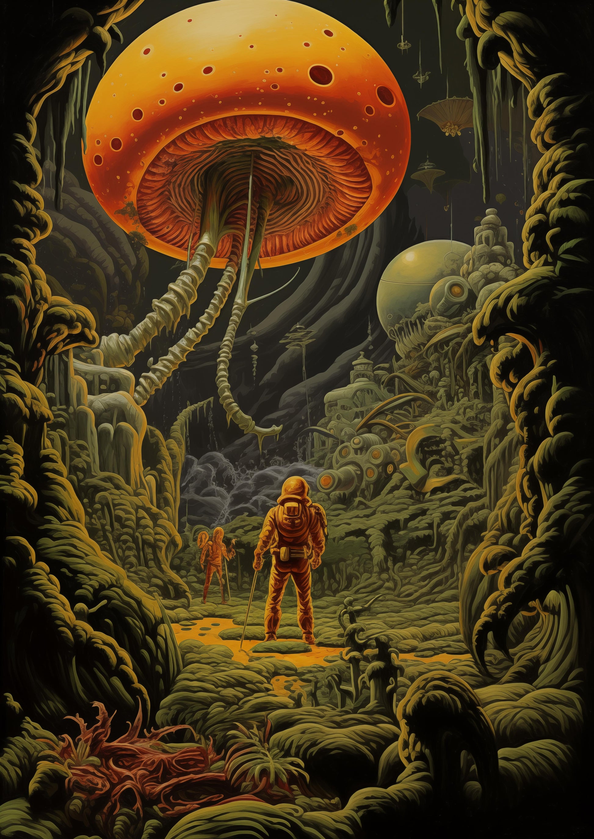 Embark on a cosmic journey with the poster “Hazard Realm“, which is part of the collection Celestial Oddities, inspired by extraterrestrial wonders. Explore bizarre landscapes, encounter unique aliens, and witness futuristic scenes that blend seamlessly with the cosmos. Each poster captures the essence of cosmic exploration, portraying otherworldly scenery and the enigmatic beauty of extraterrestrial realms.