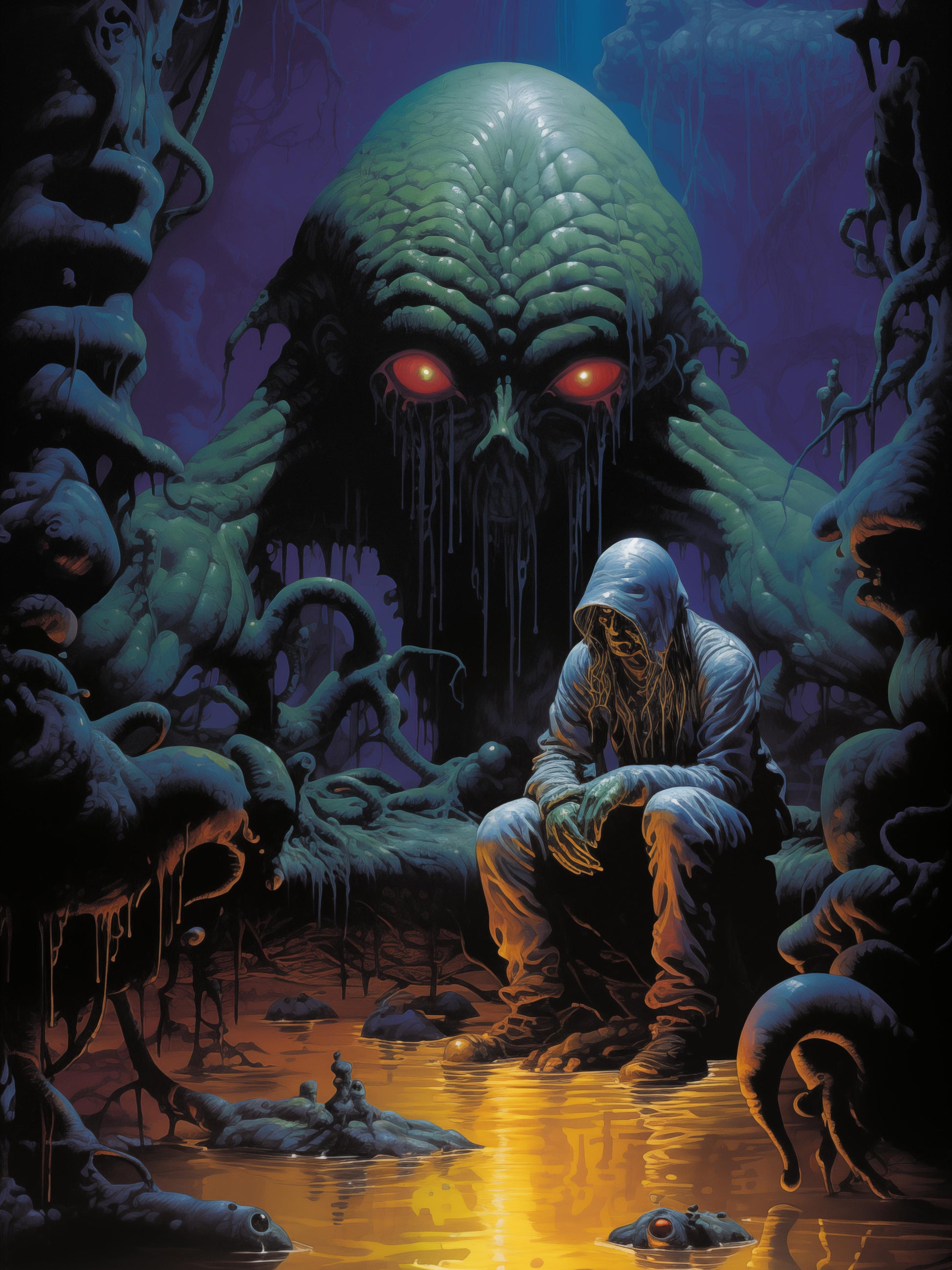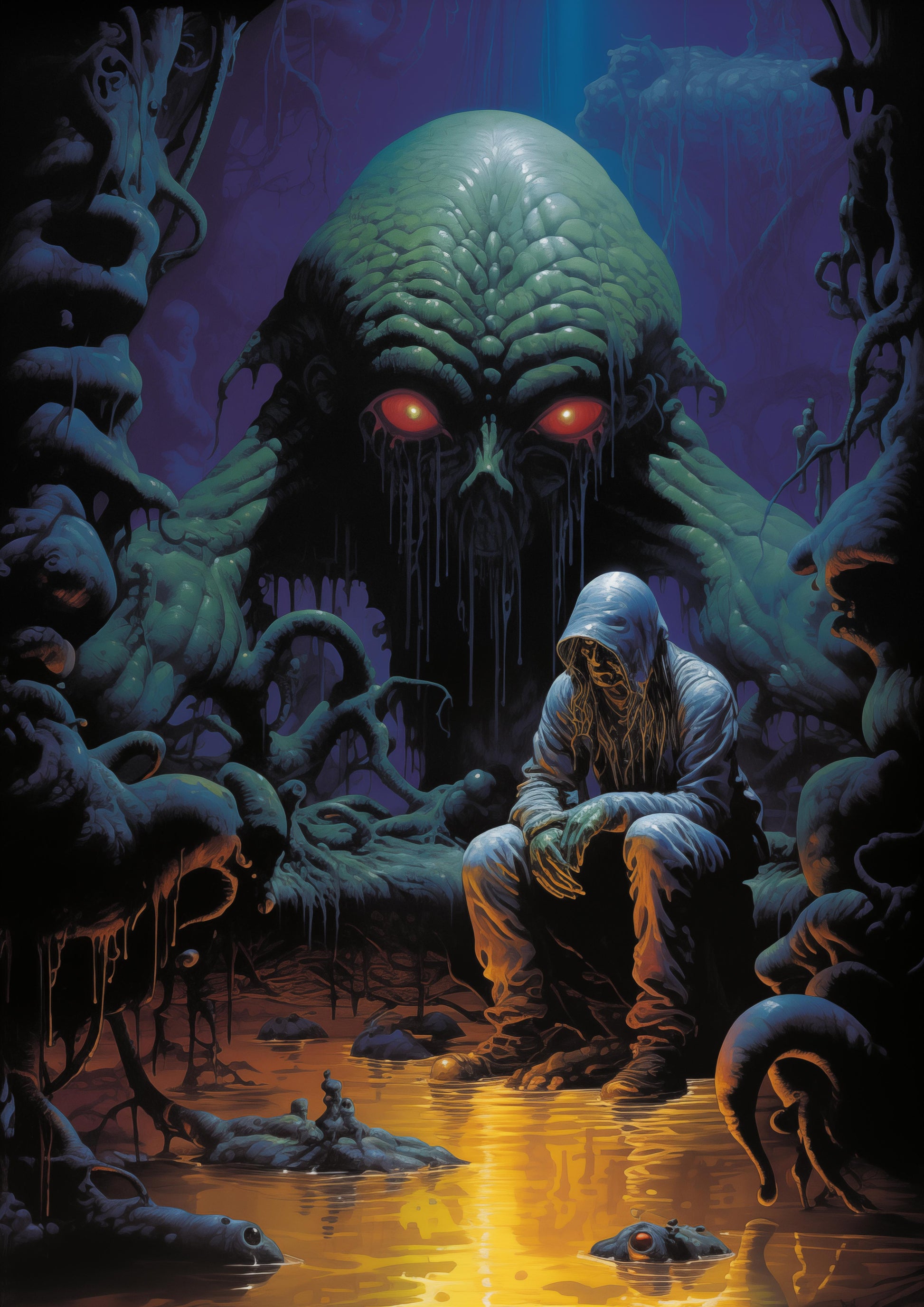 Embark on a cosmic journey with the poster “Intergalactic Intruder“, which is part of the collection Celestial Oddities, inspired by extraterrestrial wonders. Explore bizarre landscapes, encounter unique aliens, and witness futuristic scenes that blend seamlessly with the cosmos. Each poster captures the essence of cosmic exploration, portraying otherworldly scenery and the enigmatic beauty of extraterrestrial realms.