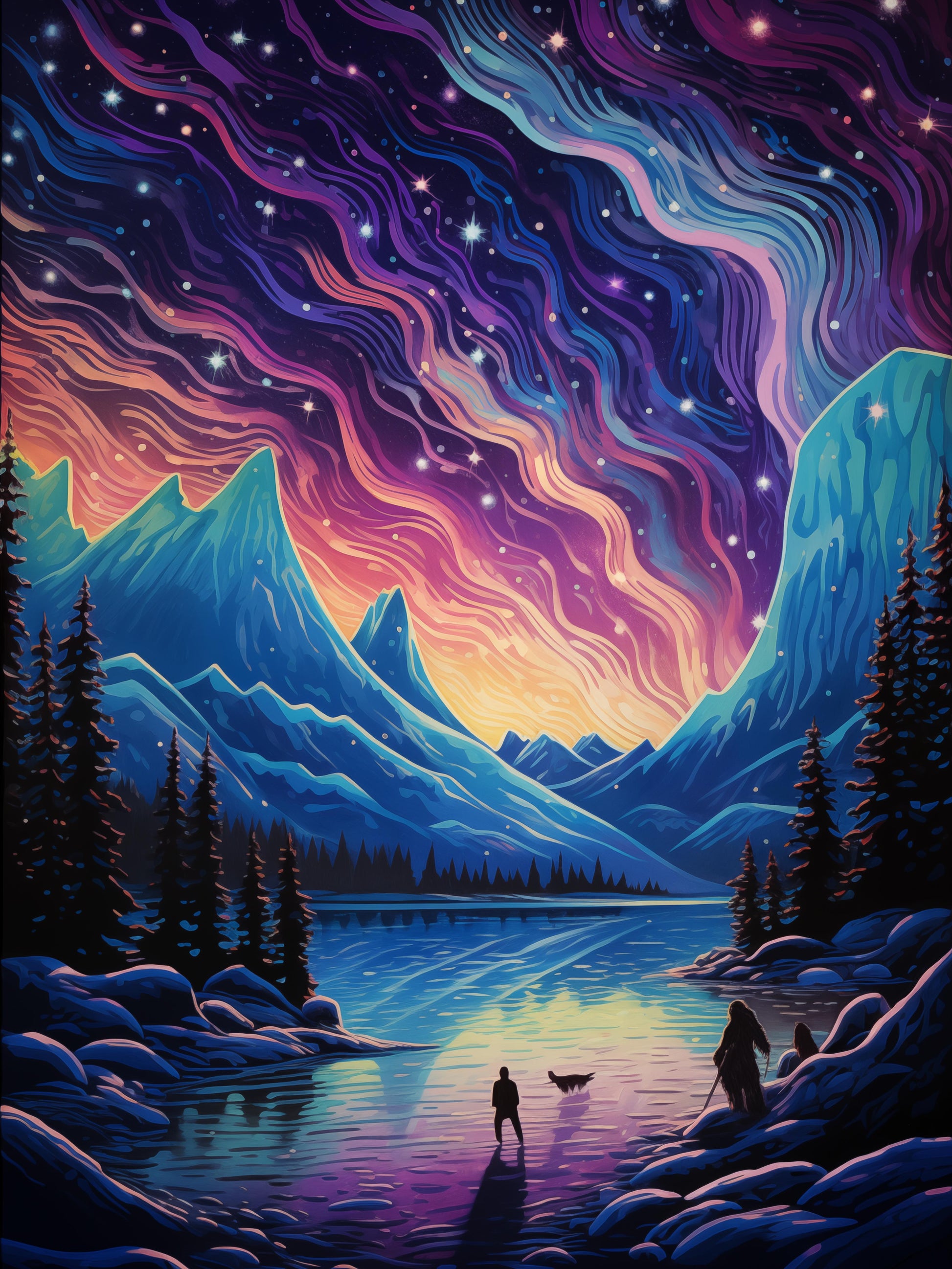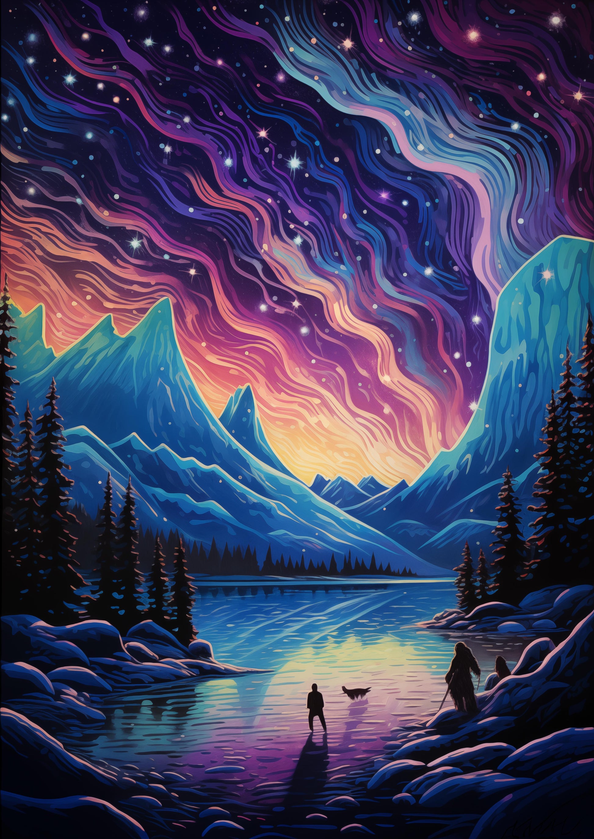 Immerse yourself in the beauty of our natural world with the breathtaking “Lakeside Aurora“, part of the Enchanting Wilderness collection that captures the essence of diverse landscapes, vibrant skies, and majestic wildlife. Each poster brings the serene beauty of nature into your space. From stunning sunsets and lush forests to pscychedelic skylines, embark on a visual journey that celebrates the harmonious interplay of colors, light, and the diverse creatures that inhabit this world.
