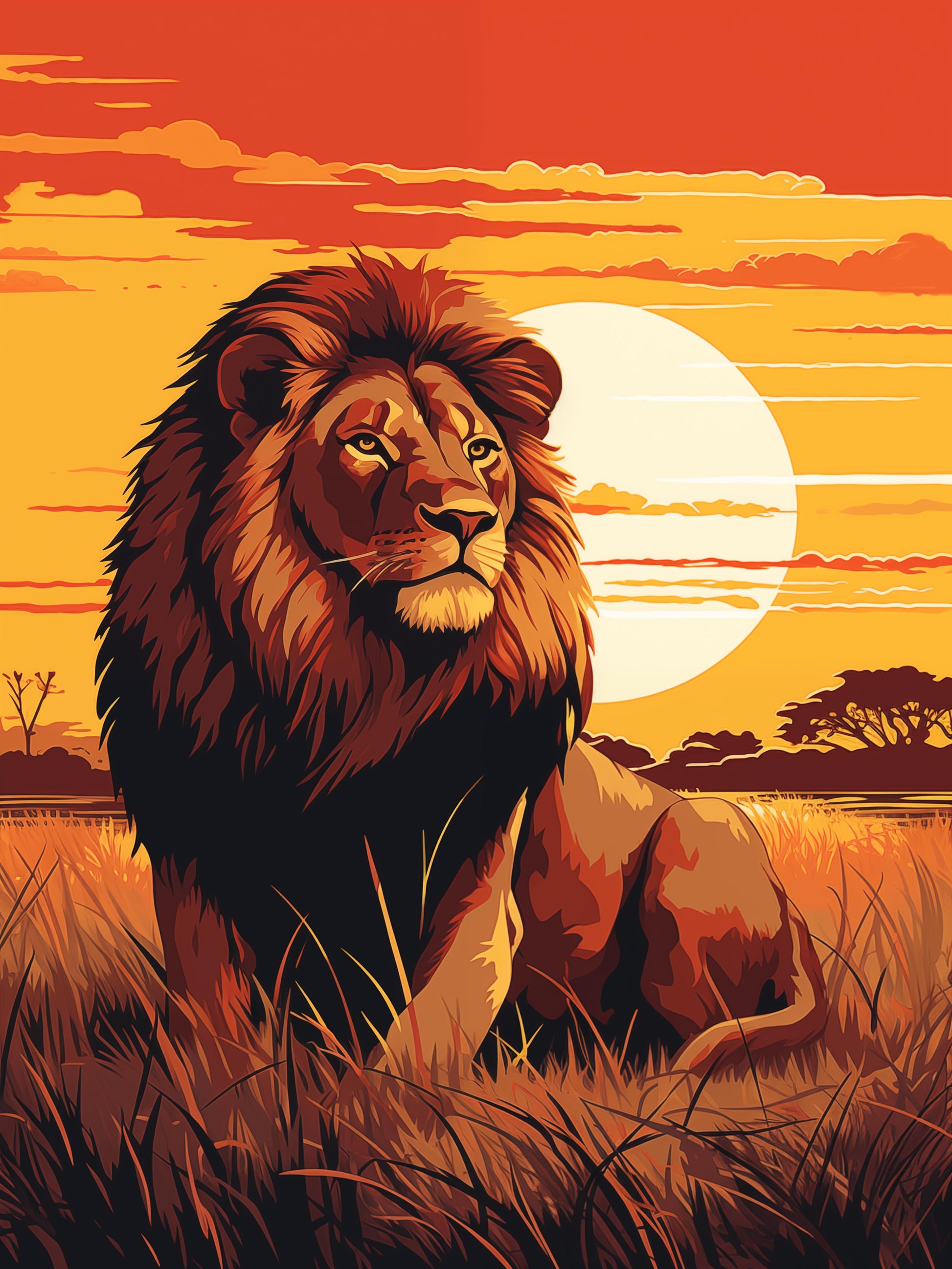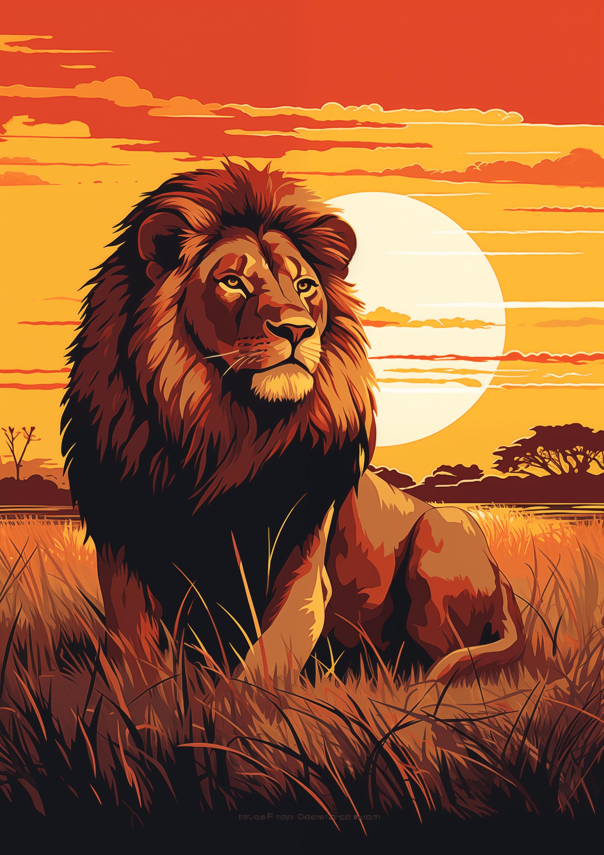Order your "Lion’s Golden Sunset" today and experience the magic of AI artistry.