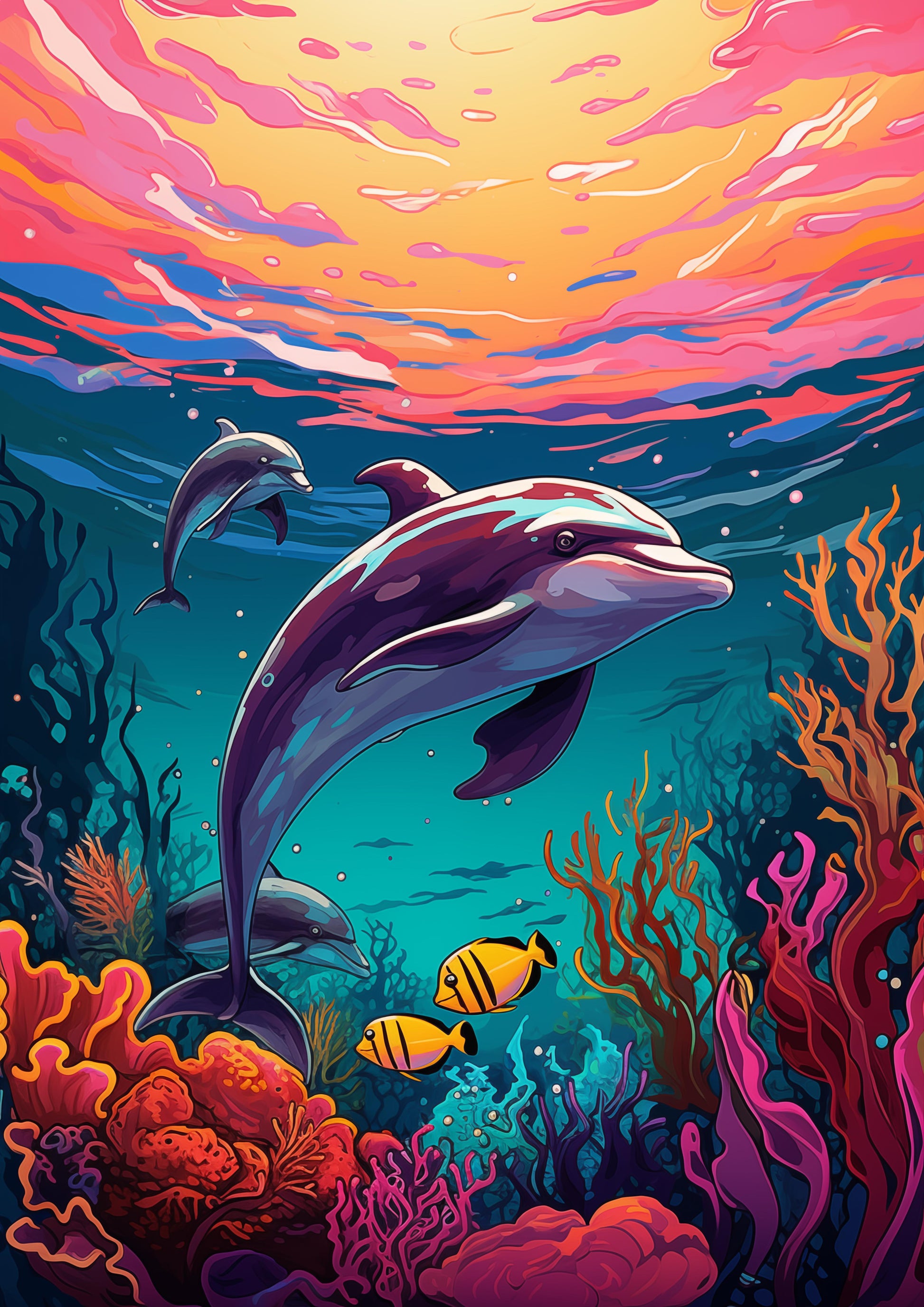 Immerse yourself in the beauty of our natural world with the breathtaking “Mesmerizing Dolphins“, part of the Enchanting Wilderness collection that captures the essence of diverse landscapes, vibrant skies, and majestic wildlife. Each poster brings the serene beauty of nature into your space. From stunning sunsets and lush forests to pscychedelic skylines, embark on a visual journey that celebrates the harmonious interplay of colors, light, and the diverse creatures that inhabit this world.