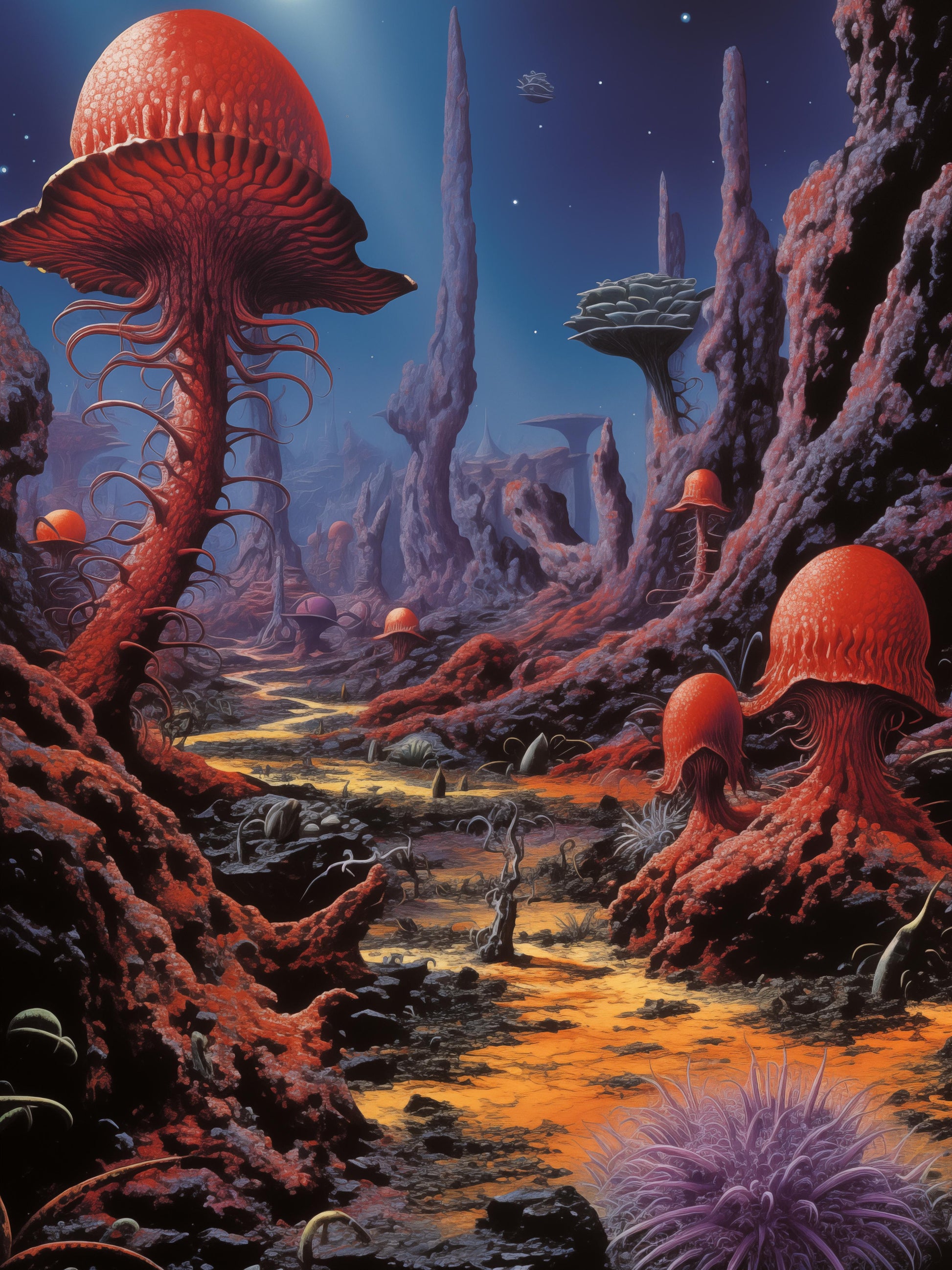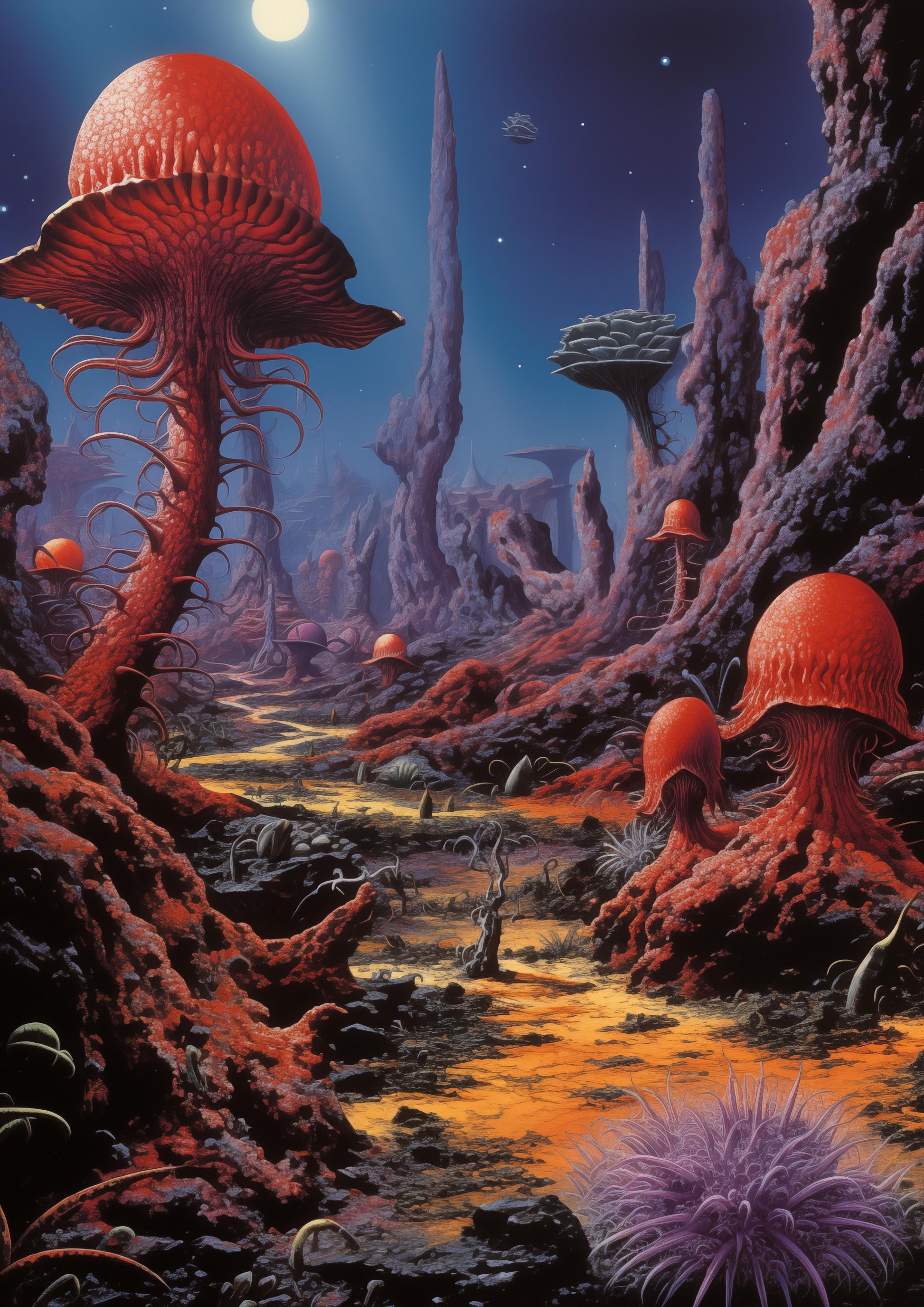 Embark on a cosmic journey with the poster “Otherworldly Botany“, which is part of the collection Celestial Oddities, inspired by extraterrestrial wonders. Explore bizarre landscapes, encounter unique aliens, and witness futuristic scenes that blend seamlessly with the cosmos. Each poster captures the essence of cosmic exploration, portraying otherworldly scenery and the enigmatic beauty of extraterrestrial realms.