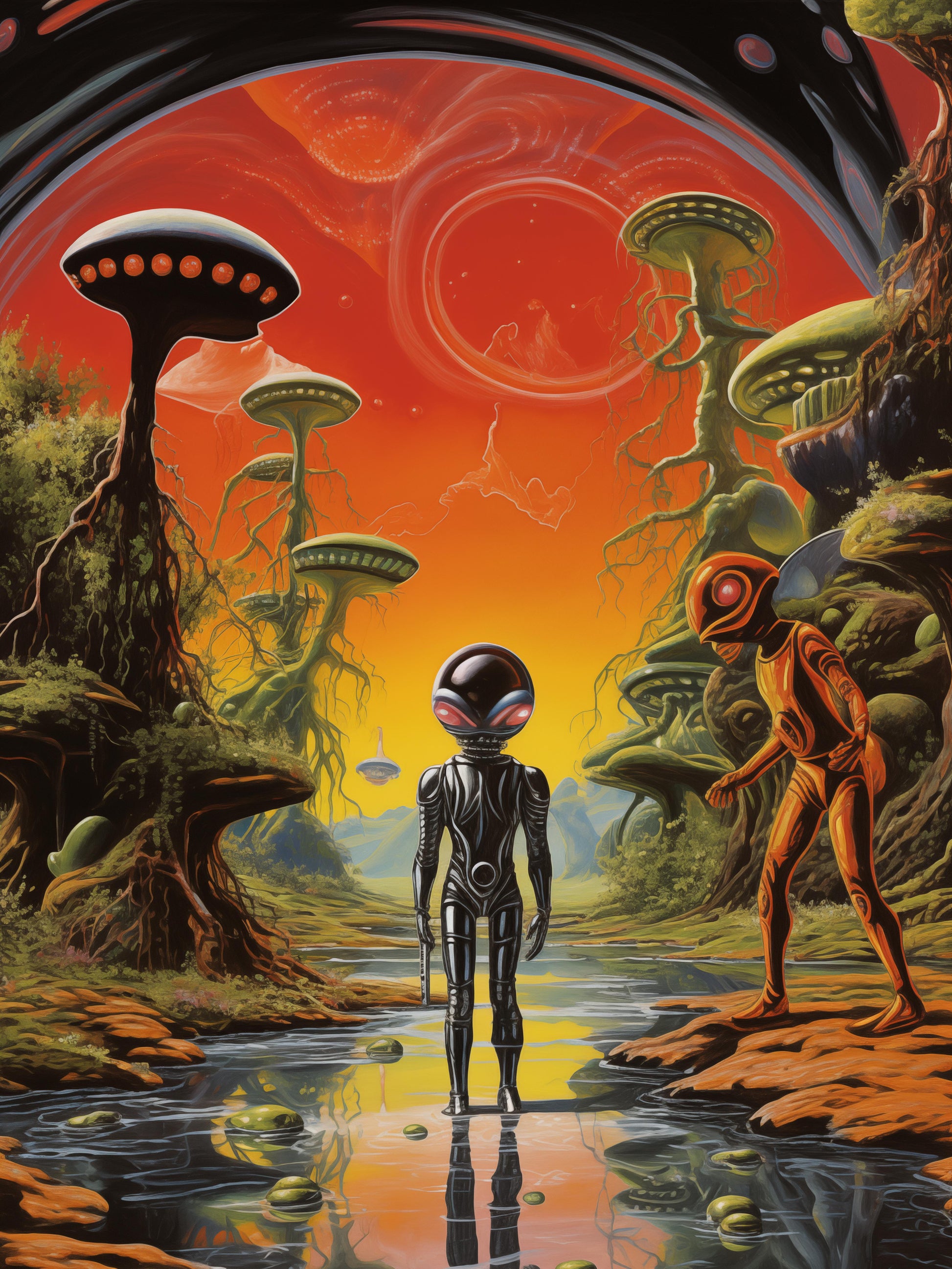 Embark on a cosmic journey with the poster ““, which is part of the collection Celestial Oddities, inspired by extraterrestrial wonders. Explore bizarre landscapes, encounter unique aliens, and witness futuristic scenes that blend seamlessly with the cosmos. Each poster captures the essence of cosmic exploration, portraying otherworldly scenery and the enigmatic beauty of extraterrestrial realms.