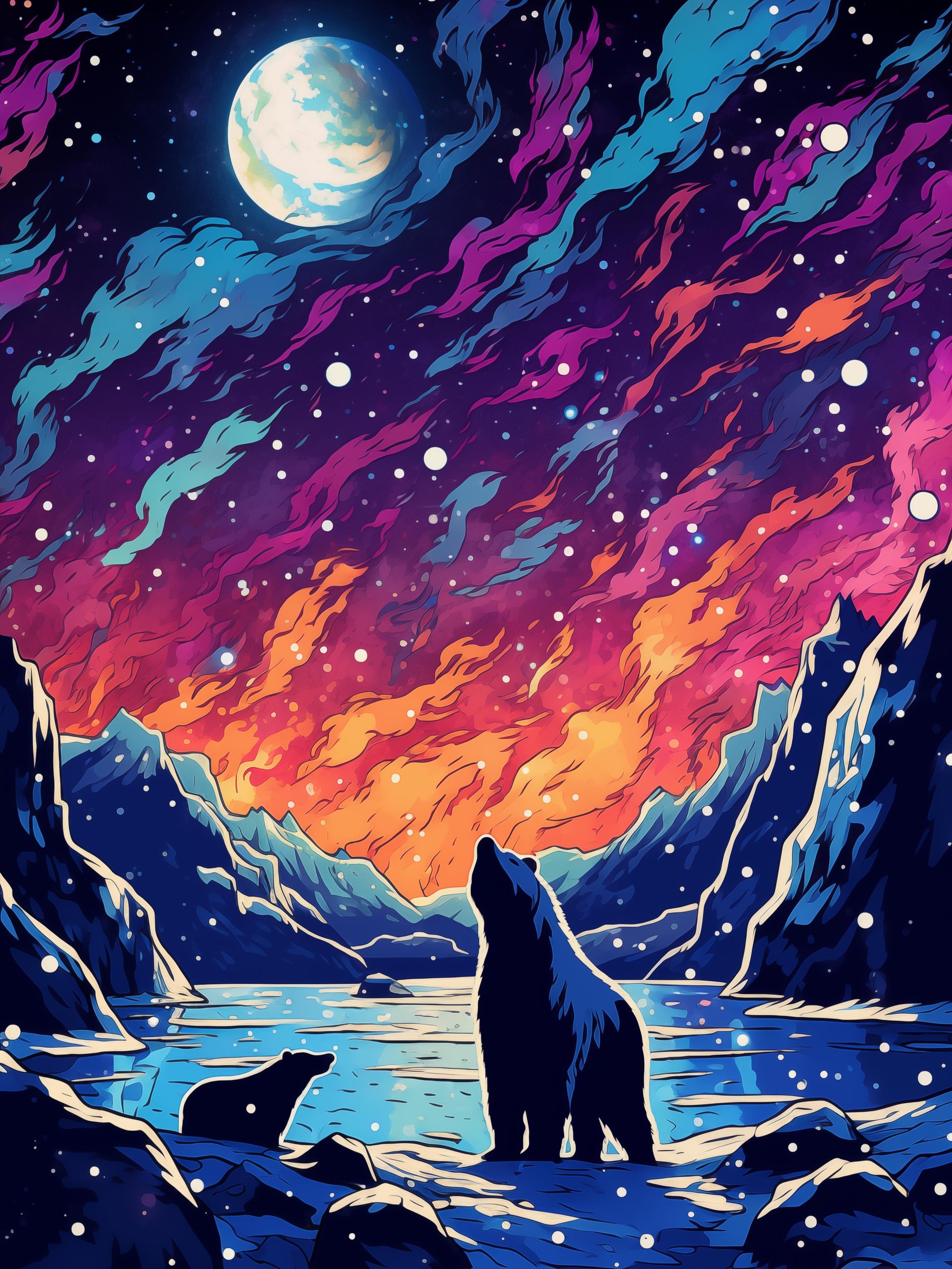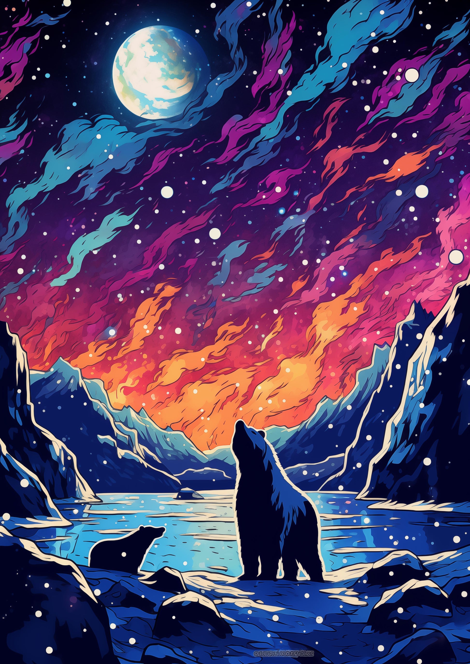 Immerse yourself in the beauty of our natural world with the breathtaking “Polar Stargaze“, part of the Enchanting Wilderness collection that captures the essence of diverse landscapes, vibrant skies, and majestic wildlife. Each poster brings the serene beauty of nature into your space. From stunning sunsets and lush forests to pscychedelic skylines, embark on a visual journey that celebrates the harmonious interplay of colors, light, and the diverse creatures that inhabit this world.