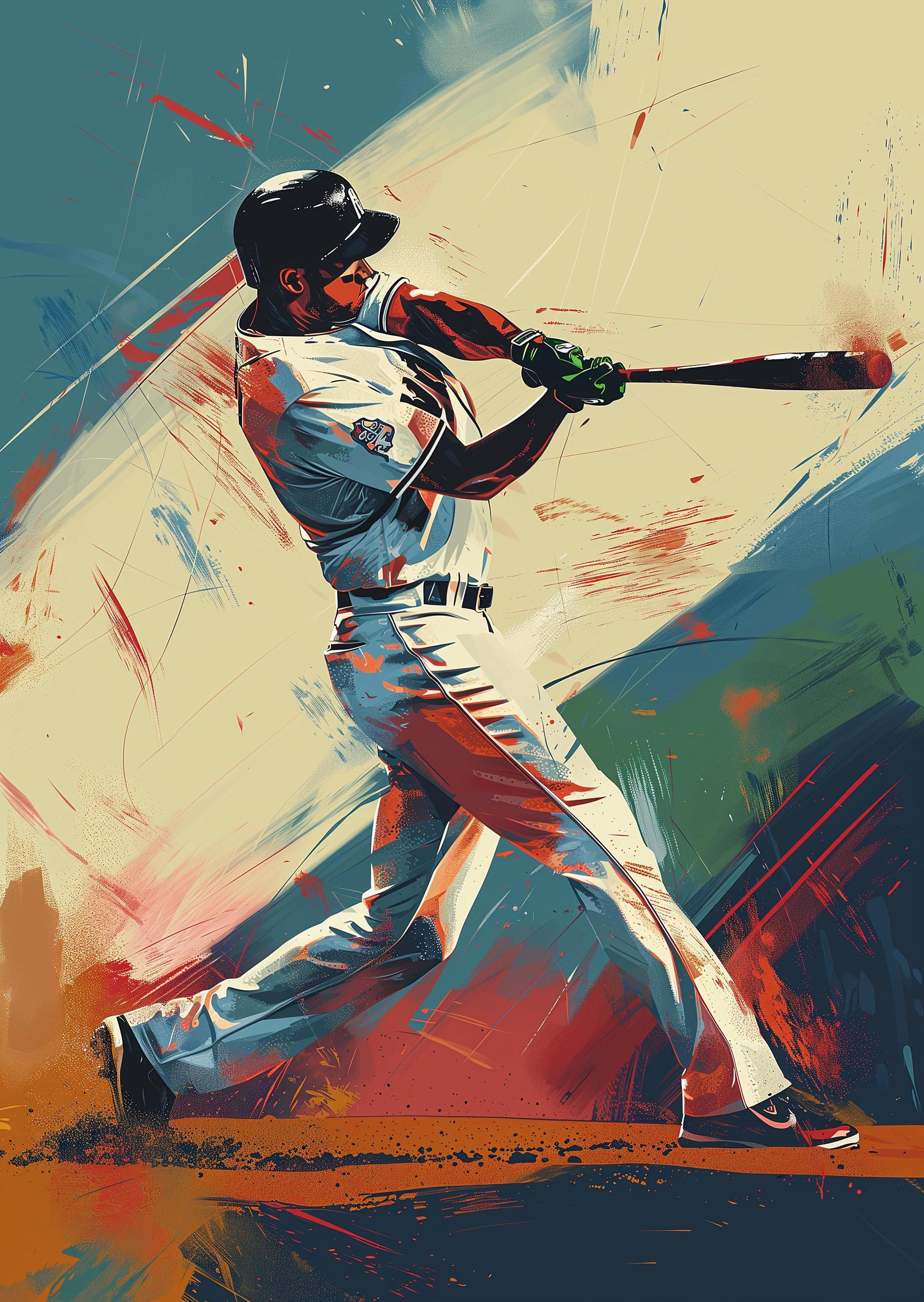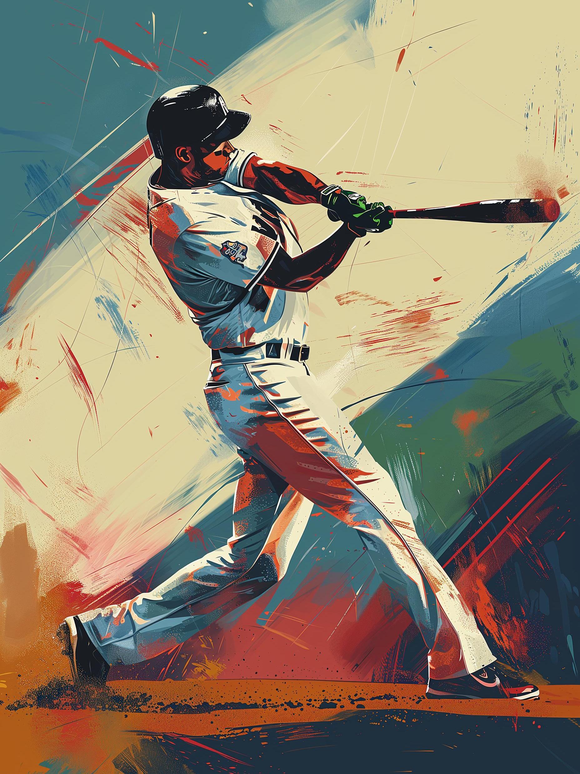 In the image, a baseball player is caught mid-swing, his body coiled with focus and power. The stadium is filled with eager fans, their eyes fixed on him. The pitch had been fast, but his swing is faster, aiming for a hit that could turn the game. As the bat connects with the ball, there's a loud crack, slicing the tense air. It's a crucial moment, the kind that decides winners and losers. The ball soars high, and for a split second, everything pauses - will it be the home run that seals victory?