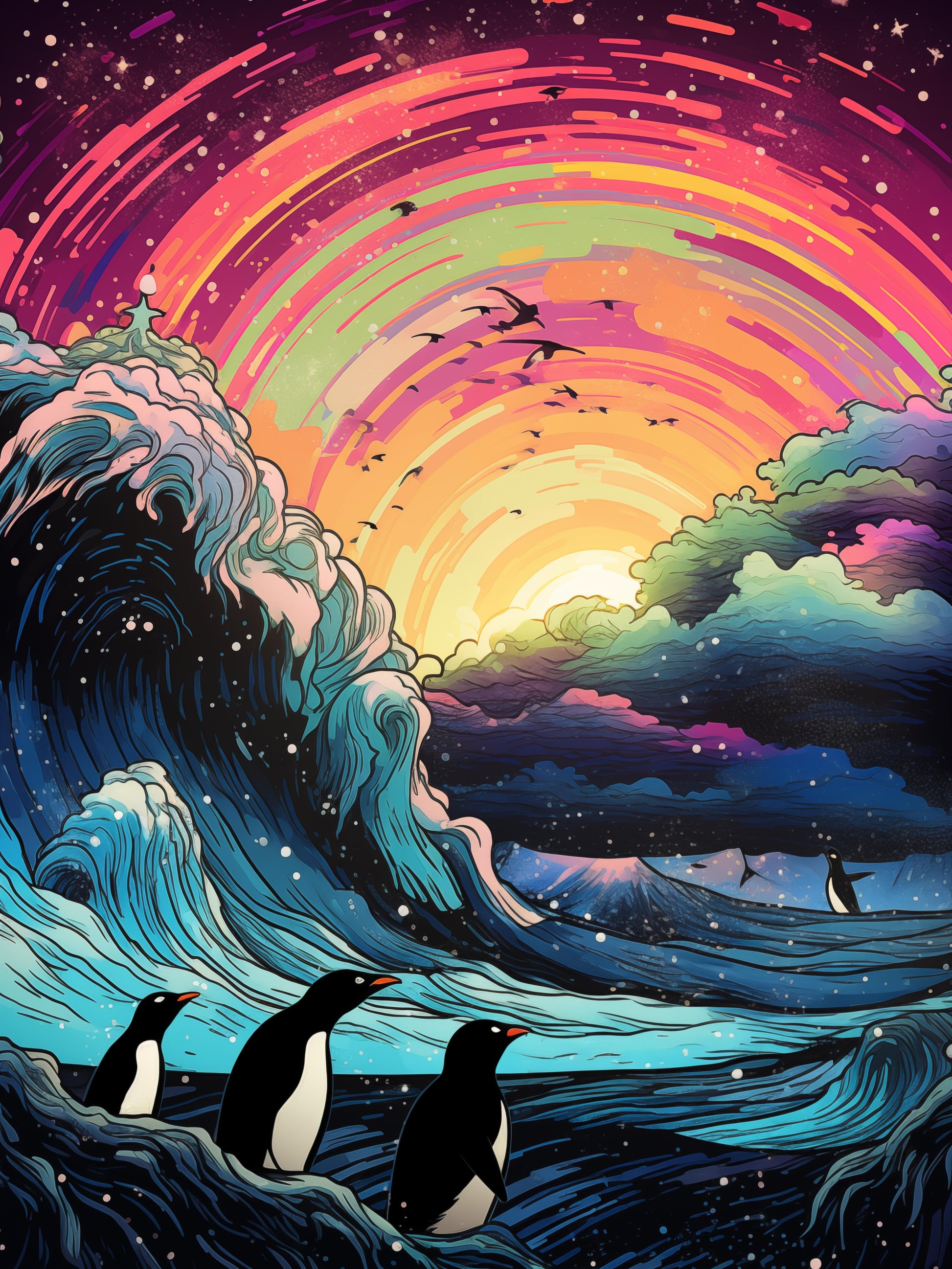 Order your "Prismatic Penguins" today and experience the magic of AI artistry.