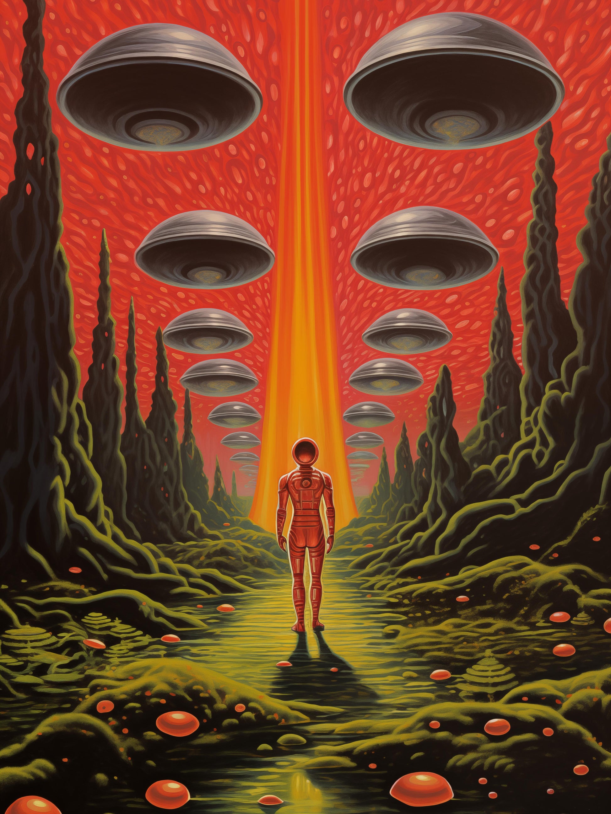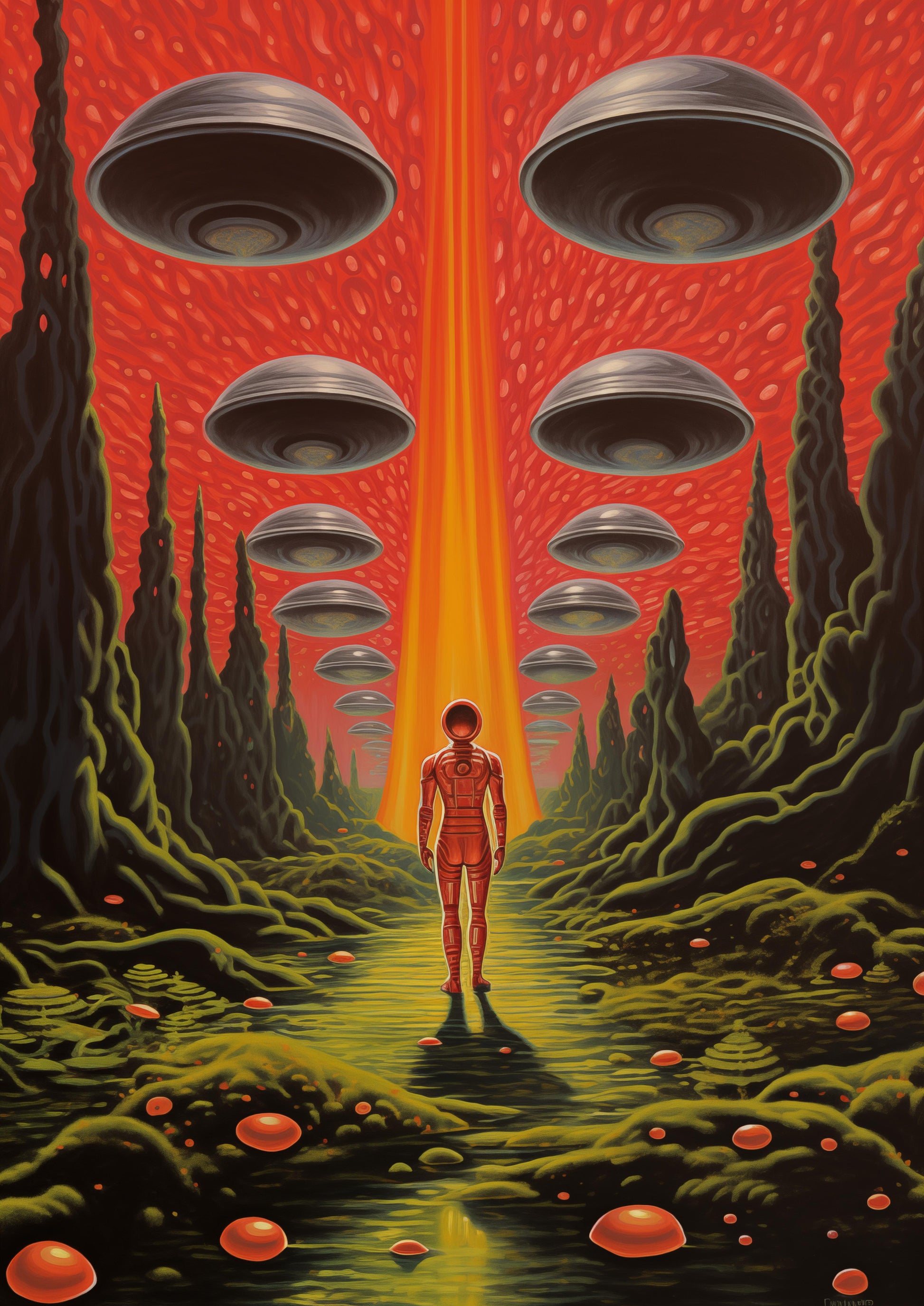 Embark on a cosmic journey with the poster “Shuttle Symphony“, which is part of the collection Celestial Oddities, inspired by extraterrestrial wonders. Explore bizarre landscapes, encounter unique aliens, and witness futuristic scenes that blend seamlessly with the cosmos. Each poster captures the essence of cosmic exploration, portraying otherworldly scenery and the enigmatic beauty of extraterrestrial realms.