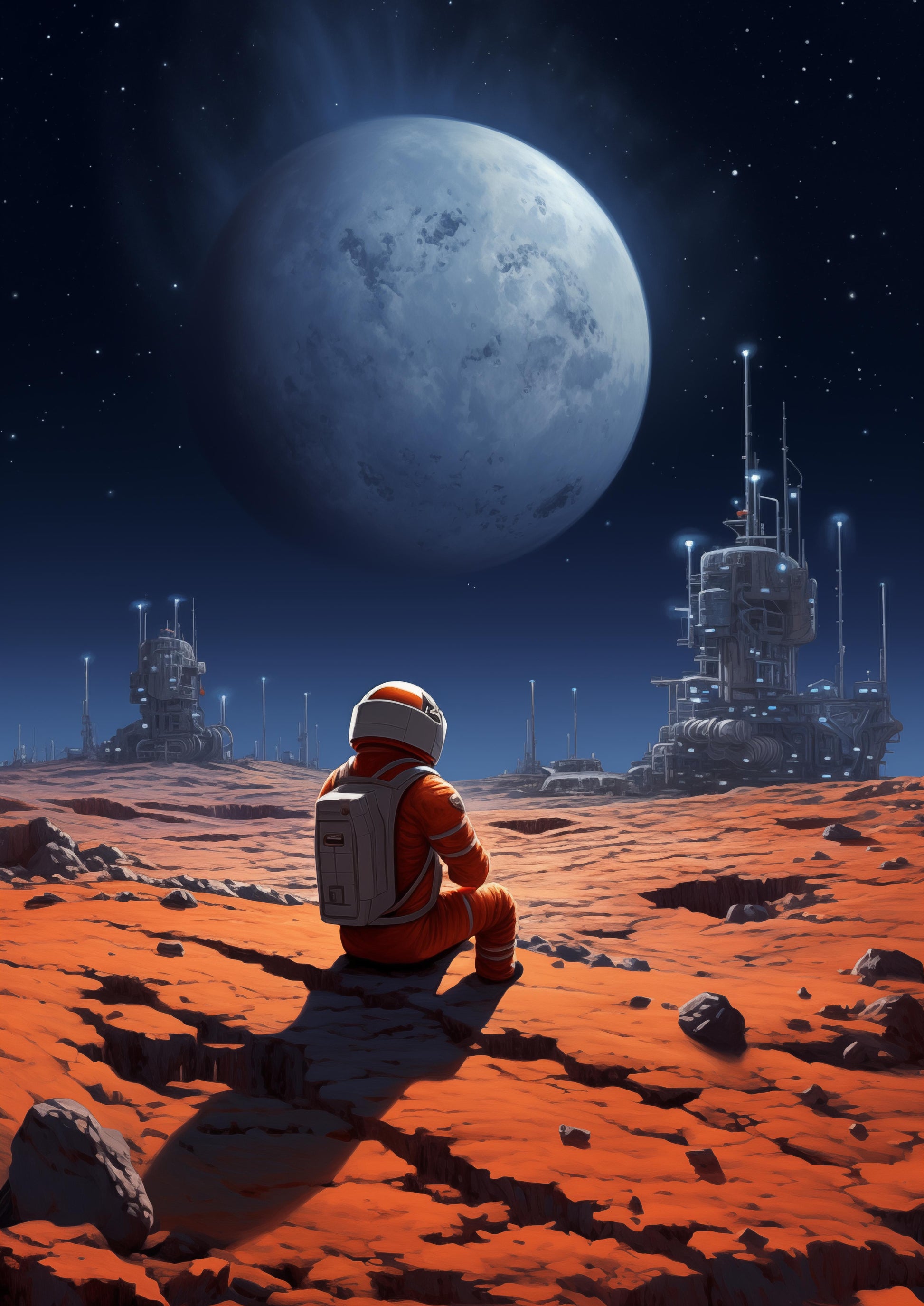 Embark on a cosmic journey with the poster “Solitary Observer“, which is part of the collection Celestial Oddities, inspired by extraterrestrial wonders. Explore bizarre landscapes, encounter unique aliens, and witness futuristic scenes that blend seamlessly with the cosmos. Each poster captures the essence of cosmic exploration, portraying otherworldly scenery and the enigmatic beauty of extraterrestrial realms.