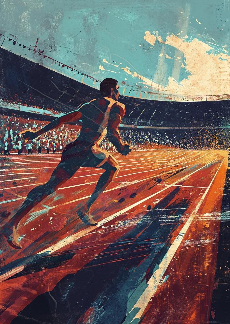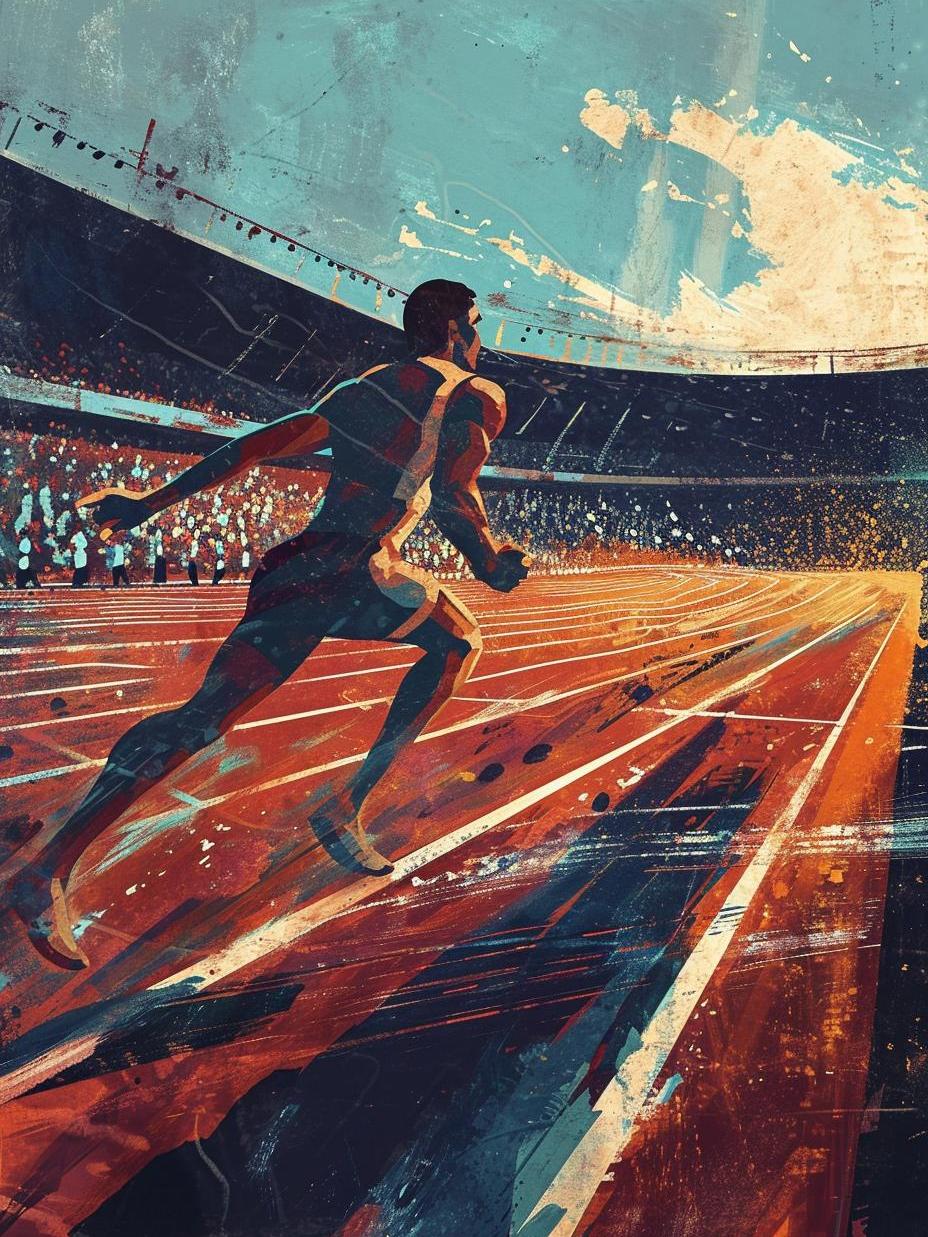 In a packed stadium, the air thick with excitement, runners line up. Hearts pound as the crowd holds its breath. Bang! The starting gun fires, and they're off! Each athlete pushes their limits, feet pounding the track, muscles straining. One runner breaks ahead, his face a mask of focus and determination. The finish line nears, and the roar of the crowd rises. With a final surge of speed, he clinches the win, arms raised in triumph as he crosses the line. The tension breaks into cheers and applause—a thrilling end to a breathtaking race.