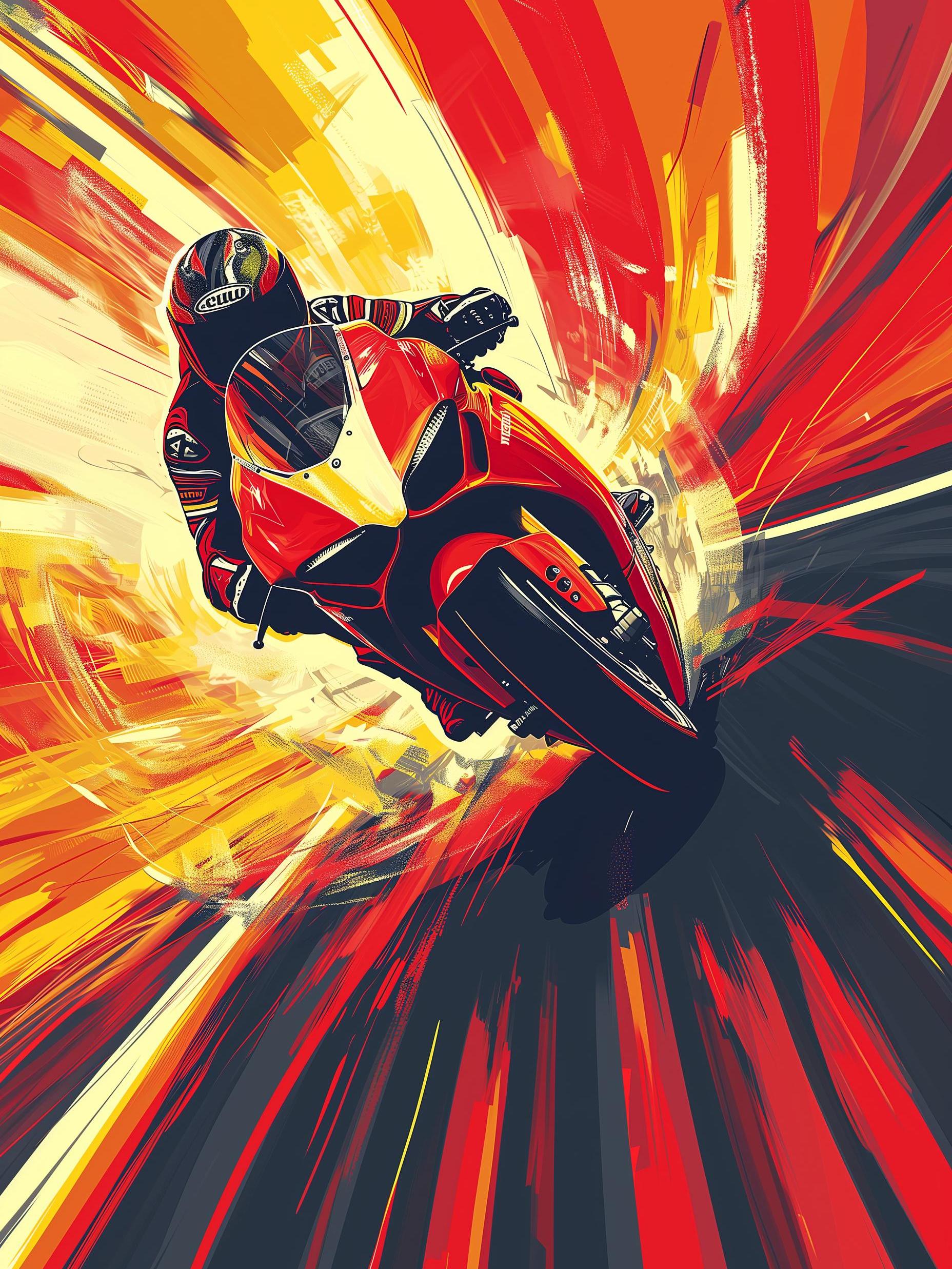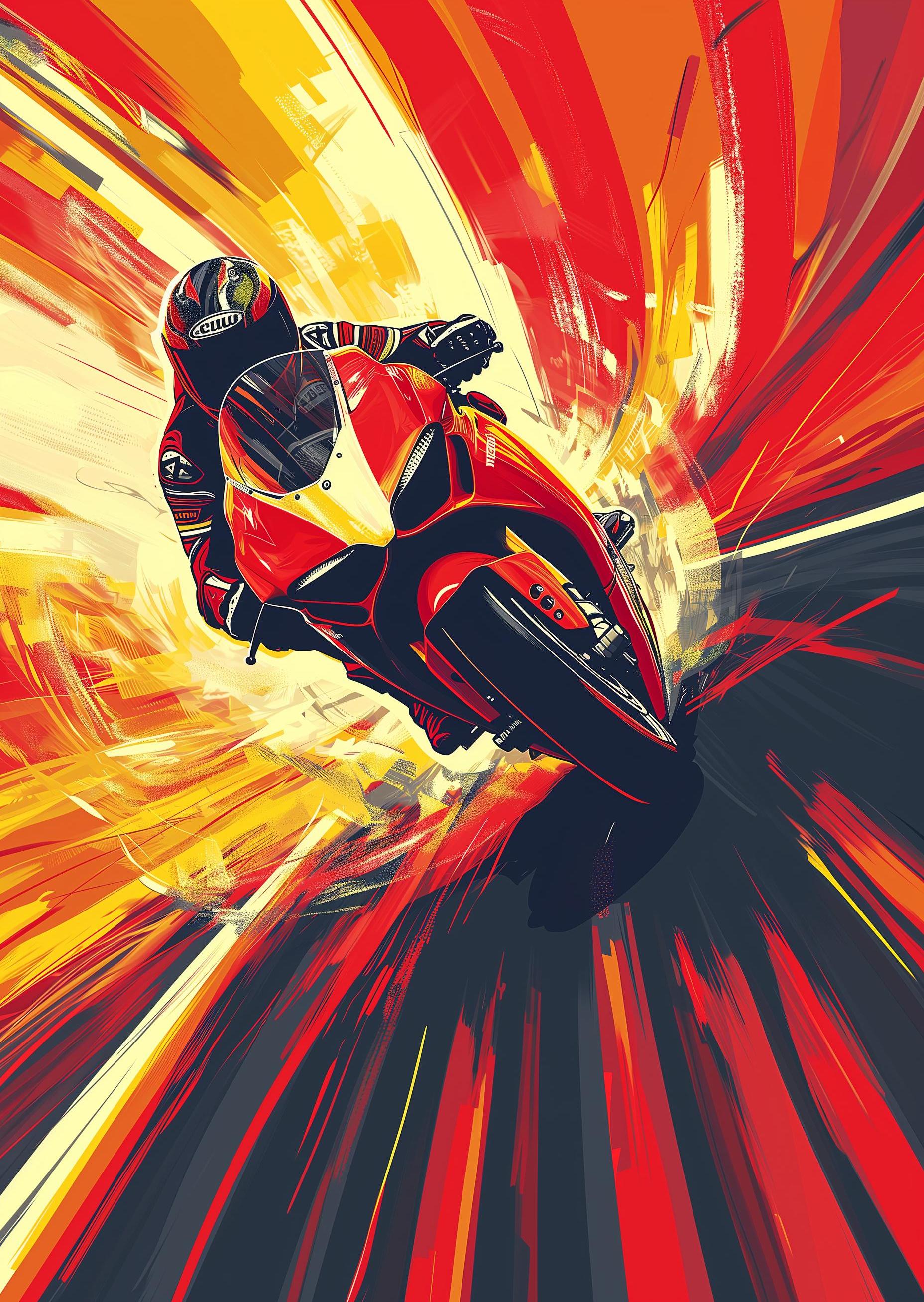 In a blur of speed and roaring engines, the motorcycle racer leaned hard into the turn. The crowd's cheering was a distant roar in his ears as he pushed his bike to the limit. Every second was a fight against the wind and the clock. Just ahead, his rival's back was a bright target. With grit and sheer nerve, he edged closer, feeling the heat of competition. As the finish line drew near, he throttled up, a burst of power and determination fueling his charge. The race wasn't just against others, but against himself, and every heartbeat pounded with the thrill of the chase and the rush of risking it all for the win.