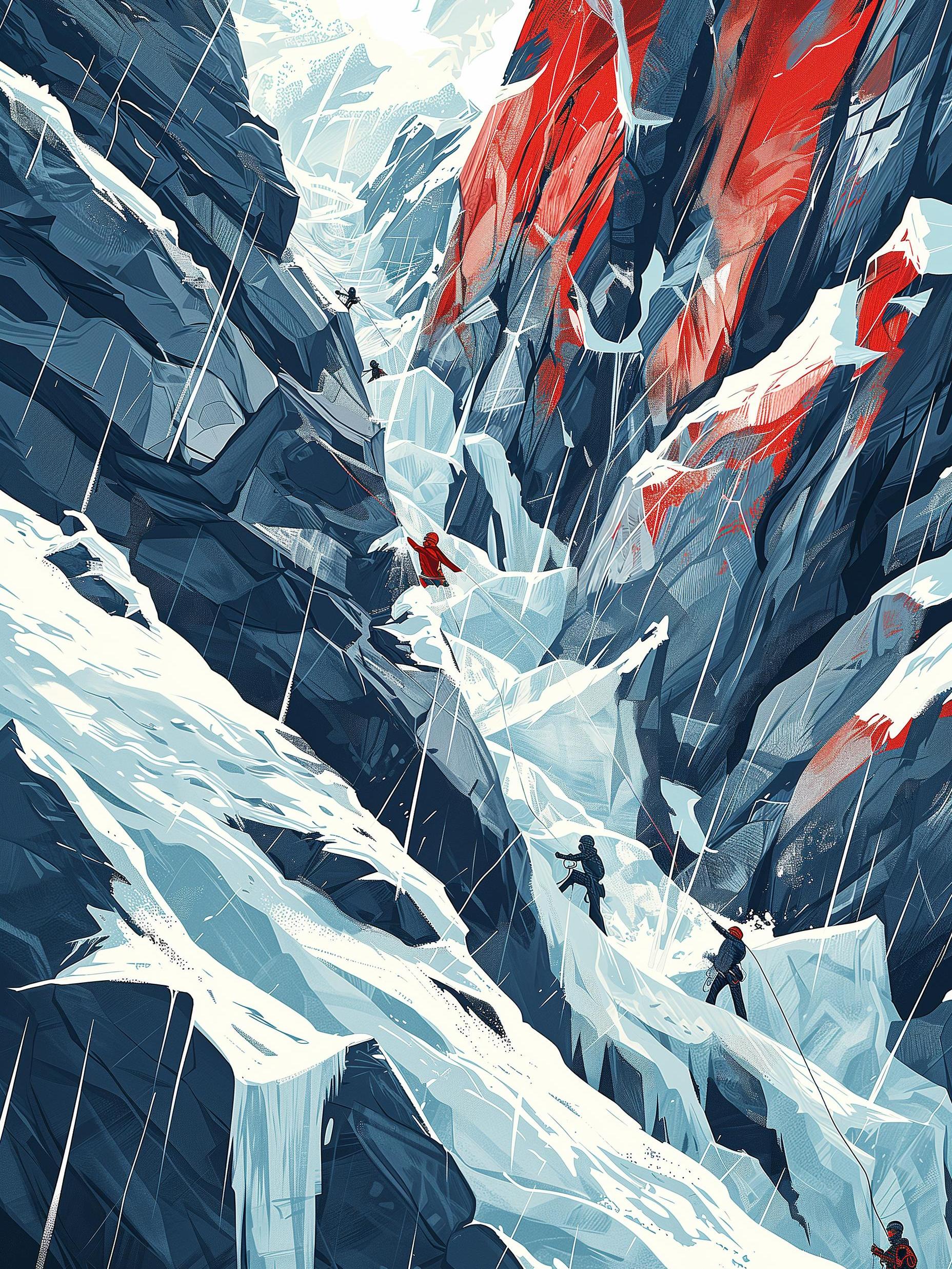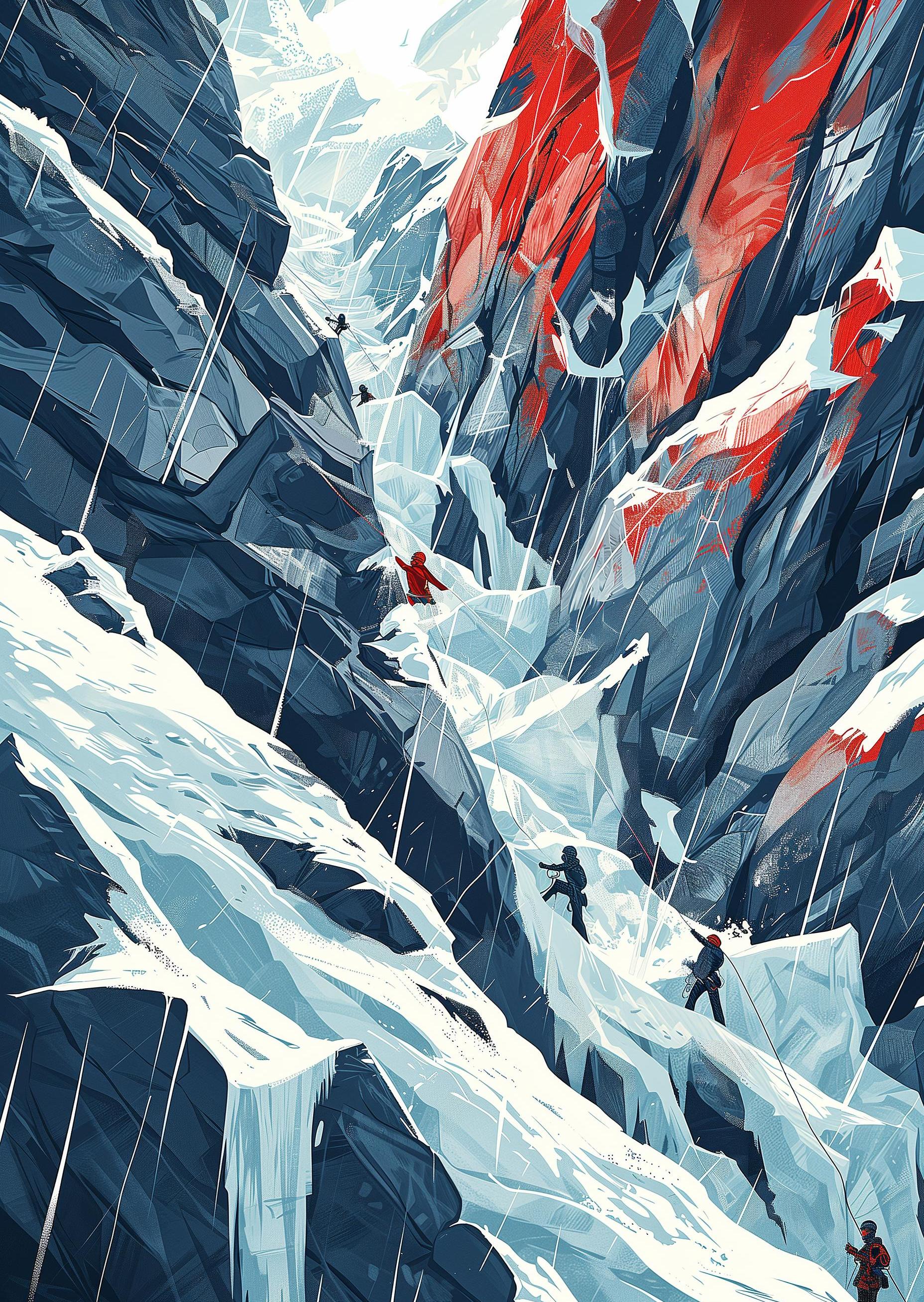 In a land of icy cliffs and crisp air, a group of climbers faced the mountain's challenge. United by courage, they tread on snow-capped paths and conquered steep rises. Each step was a dance with danger, where a firm grip could mean the difference between victory and a vast fall. They moved with determination, their bright gear spots of color against a sea of white and stone. As one reached the peak, a cheer rose, echoing off the slopes – a testament to their spirit and the wild thrill of their cold, high adventure. Together, they touched the sky, not just with their hands, but with their hearts.
