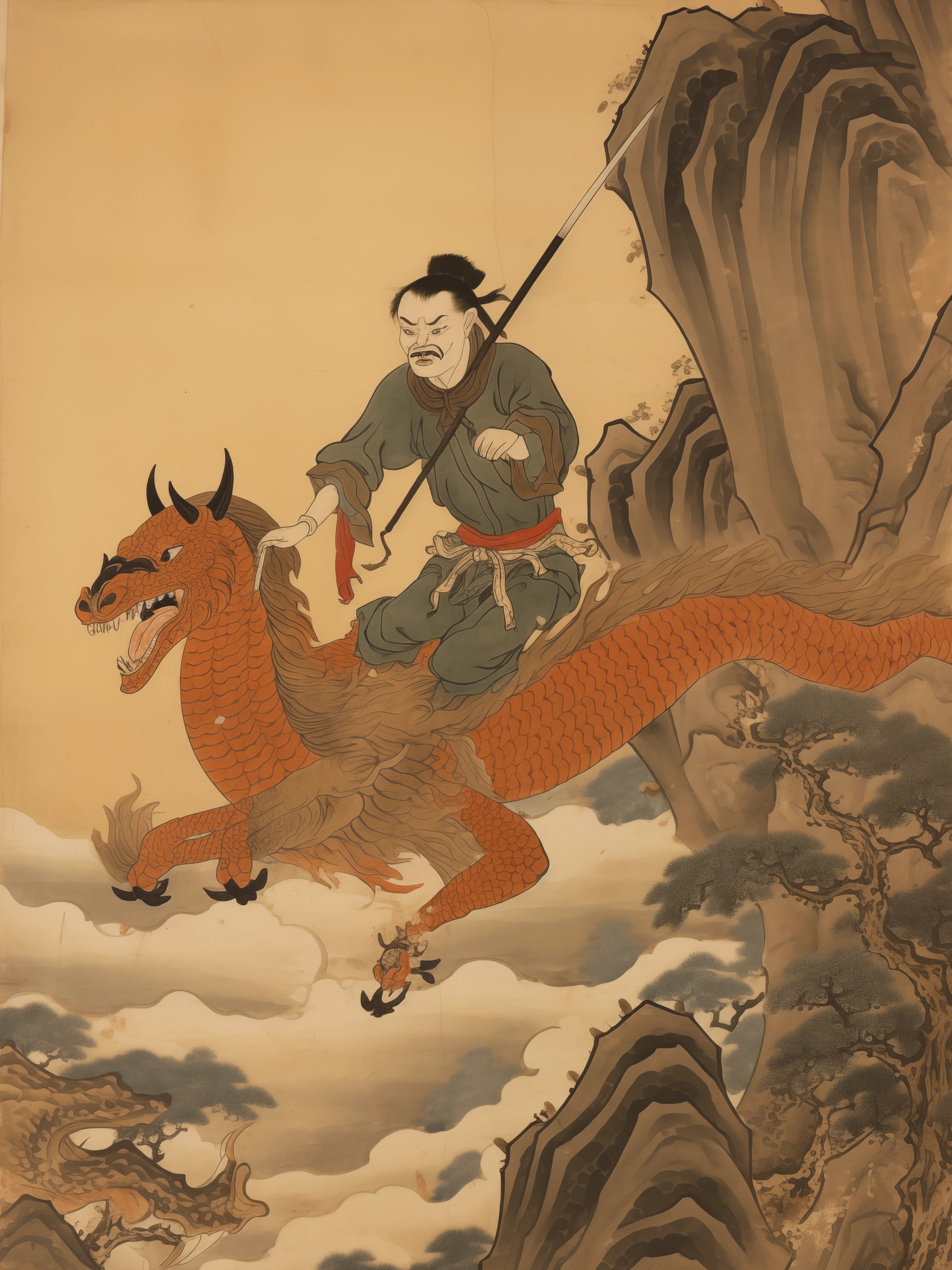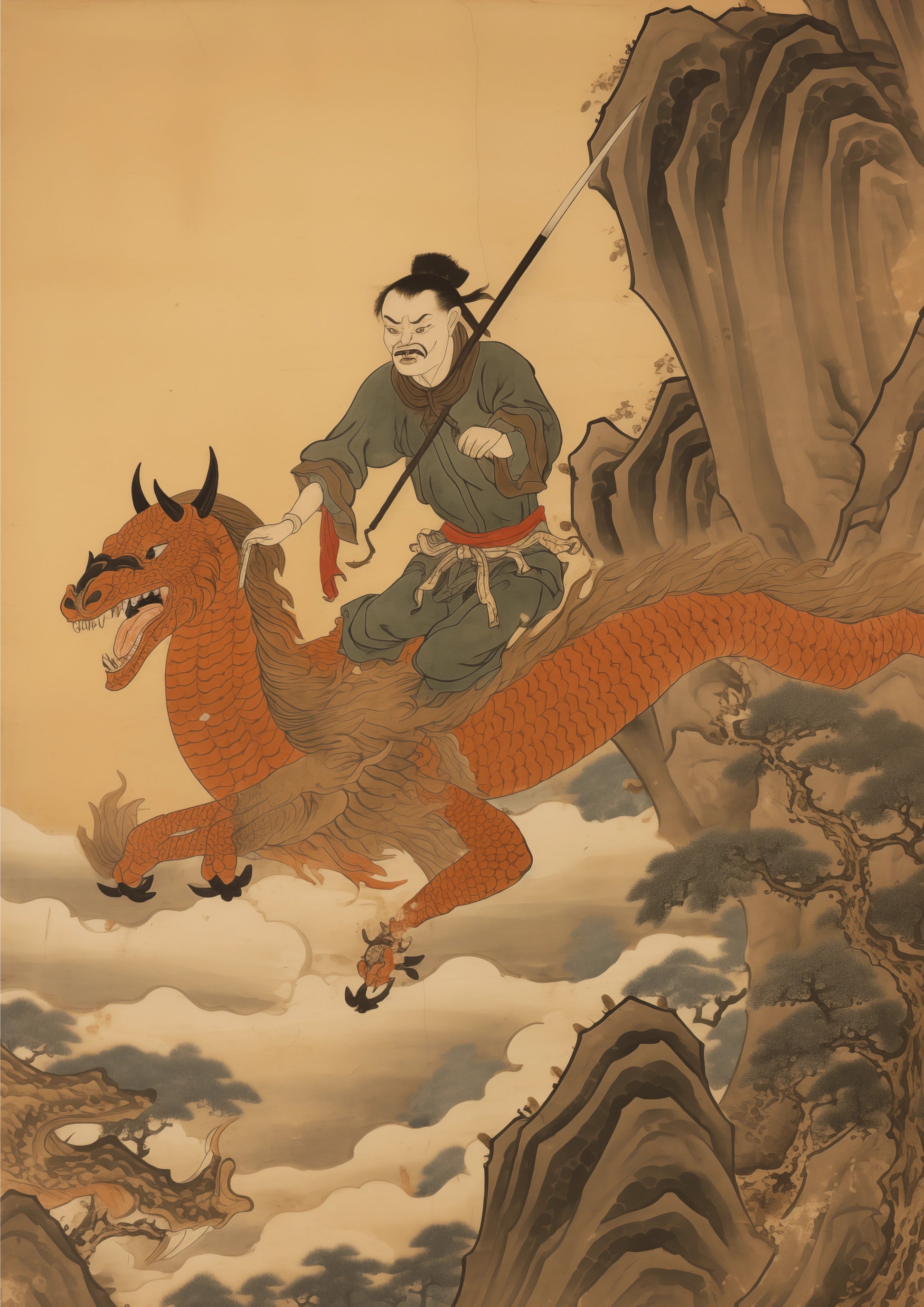 Embark on a journey of ancient valor with ‘Warrior’s flight' a captivating poster featuring a Chinese soldier astride a dragon-like creature. This dynamic depiction pays homage to the legends of yore, where courage and mystical creatures were intertwined. The soldier soars through the skies, a testament to the indomitable spirit of ancient warriors. This poster invites you to witness the fusion of human and mythical might in an epic tale of heroism.