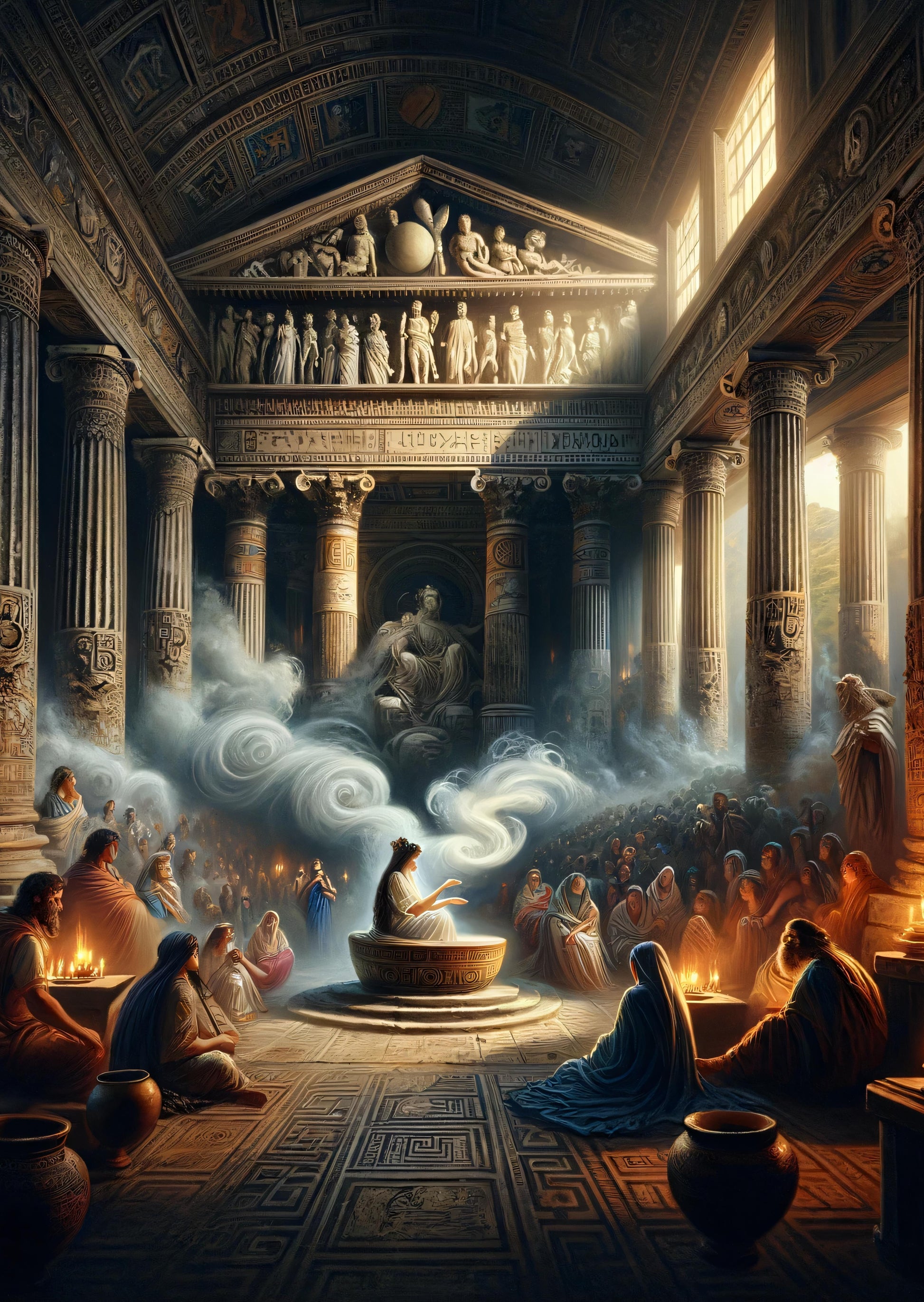 Behold the majestic temple bathed in divine light where worshippers gather to pay homage to the great Zeus, king of the Olympian gods His imposing statue looms over the sanctum, a testament to his power and authority as lord of the sky and thunder Adorned in togas and armed with reverence, the faithful stand amidst swirling incense, their hearts alight with fervor and awe The air is thick with anticipation as oracles prepare to commune with the divine, seeking wisdom amidst the whispers of ancient spirits Tradition and mystery intertwine within these hallowed walls, a realm where myth breathes life and the legacy of Greek mythology endures.